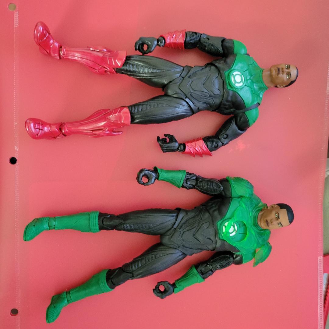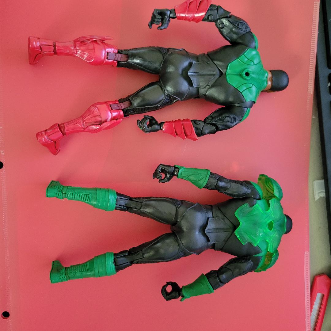 SO i want to turn john stewart into a red lanten but maybe give him a diff head [hal jordon]. I need help what works with this fig.pics of what ive done so far.