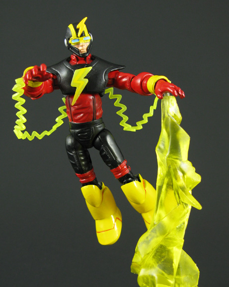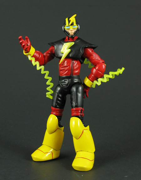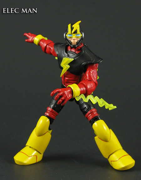 Here's another Megaman Alterverse character with a charged personality, Elec man! He was made from a Crimson Guard, Hydra Agent head, Avengers Skrull chestplate, comic Iron man lower arms, RoC The Doctor legs, and Black Ox Revoltech lower legs. Elec man gets an electrical blast beam to ride around on and is decked out in classic Elec man design details. |