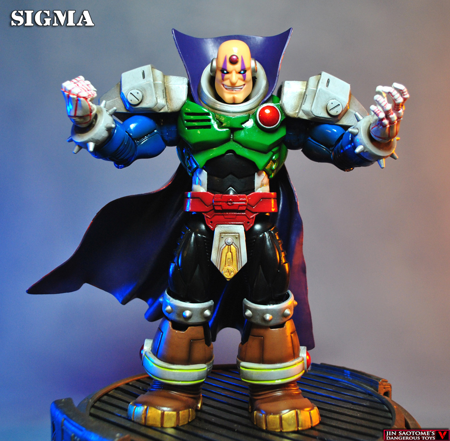 Sigma has been a staple in the Mega Man X games but we never got a fully articulated version of him, just a statue. Well no longer! Here I've created a Build-A-Figure style Sigma to scale to your Marvel Legends and Megaman figma series using an Onslaught body, Thanos hands/bent, Mandroid lower legs, Magneto cape, and Loyal Subjects Sigma head. A Titanfall pilot backpack bast was used for his beam-saber and various chest/leg/designs were sculpted using Aves Studio's Apoxie Sculpt, the best two-part modeling compound out there. Fox Sports Robot pads were used for his shoulderpads, Deadman collar, Sigma 6 GI Joe spiked bangles, and lex luthor codpiece were used in his creation as well. Sigma was then airbrushed with metallics then shaded for a glossy, robotic look. Watch out Megaman, Sigma has arrived!