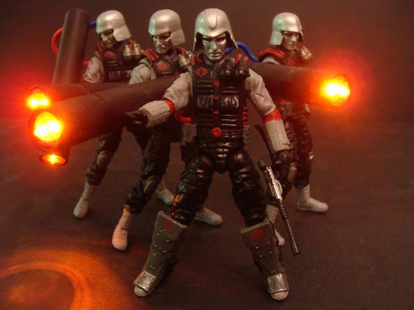I've been wanting to contribute to the Transformers/G.I. Joe crossover universe for a while now, and my contribution comes in the form of these Megatron-Vipers! Cobra Commander & Megatron have conspired to create a new Viper molded after Megatron himself! Injected with Energon by Dr. Venom, these Megatron-Vipers power their fusion cannons directly from their Energon-infused blood. Destro was contracted to design special helmets for these select Vipers to wear, and Dr. Mindbender fitted them with battle uniforms honoring the great & terrible Deception leader. Serving Megatron to keep the forces of G.I. Joe from meddling in Decepticon affairs on Earth, these Megatron-Vipers desire the total destruction of all things G.I. Joe/Autobot! Hope you can dig it! (2 posts of pics!) -Joe ![]() ![]() Dr. Venom injecting Megatron-Viper candidates with Energon (Compound E) ![]() Destro designing helmets with a personal touch.
