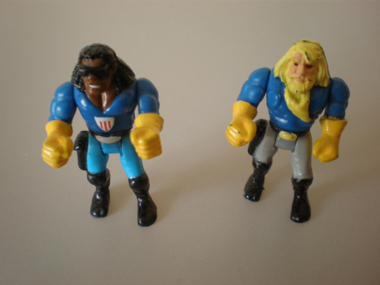 The guys in blue are from a Hotwheels line called "Road maniax"