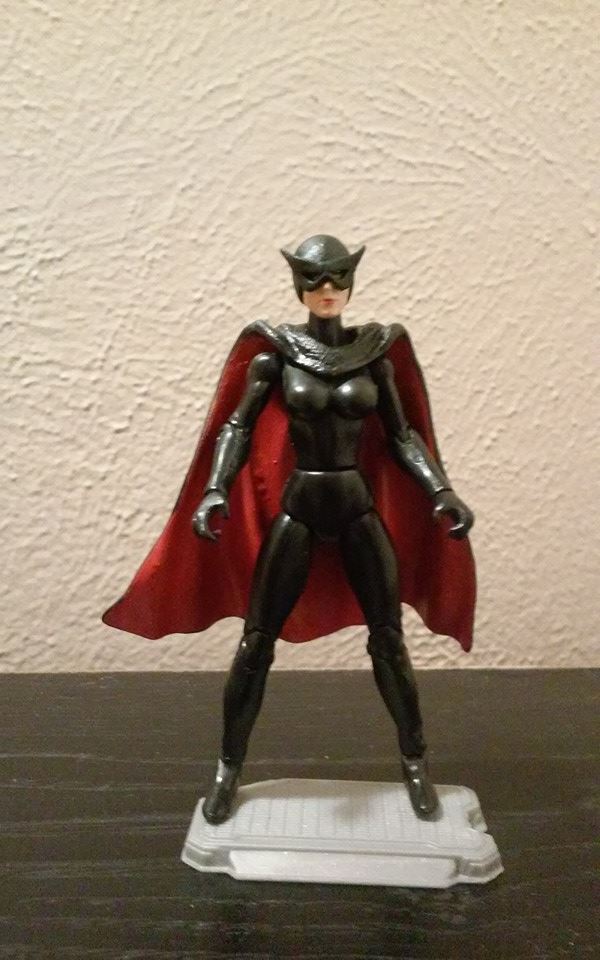 Recipe: Head: GI Joe ROC Scarlet Mask: Part of the helmet from Iron Man 2 Mandarin Body: Marvel Universe Black Widow Cape: Marvel Universe Storm Another quick custom. As I was hunting for ideas I came across a pic of Miss Fury I saw the simplicity of it and realized I would be stupid not to make a custom of her to go with my other Golden Age heroes. Luckily I had picked up all those Toys R Us Avengers exclusives (the ones with the light up stands) when they went on clearance so I have several of those Black Widows. I sculpted and cut up a Mandarin helmet to get make the cowl. Quick paint job later and she was finished. |