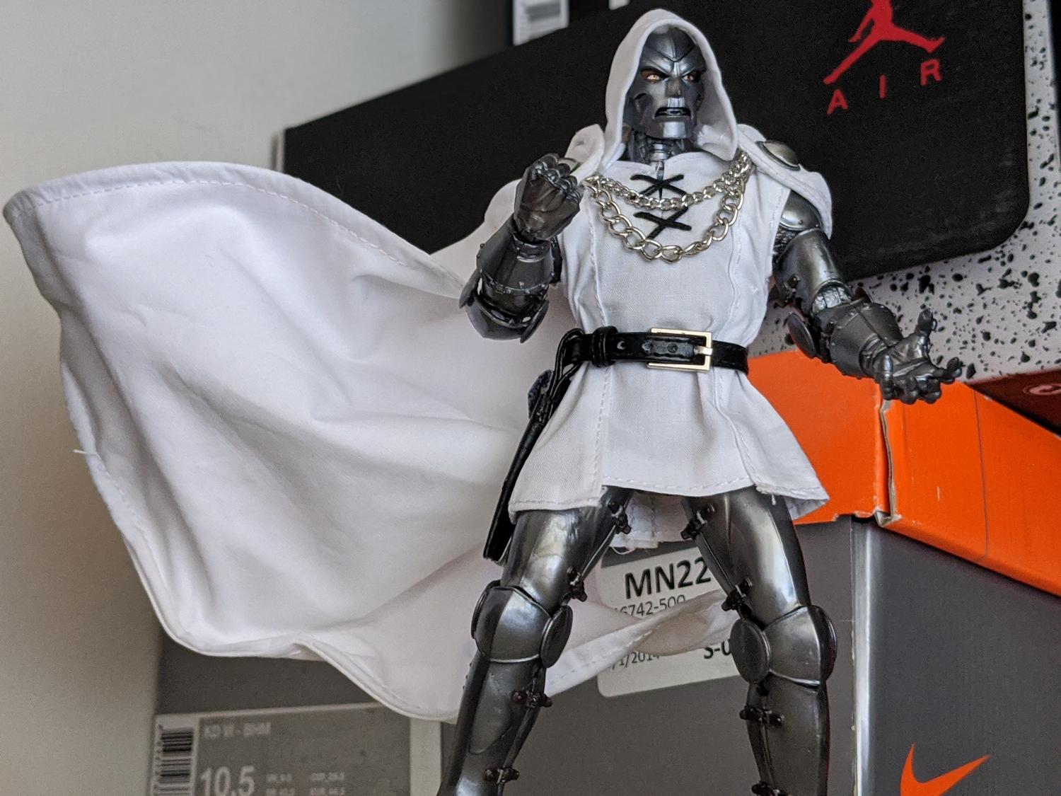 This is my first custom figure. So forgive me for the rough look of it. I purchased this costume from eBay. I loved this Marvel Legends Doom but the plastic outfit hindered the articulation too much for me. So this I decided to mod it a bit into my favorite iteration of the character. Think I should add an infinity gauntlet?