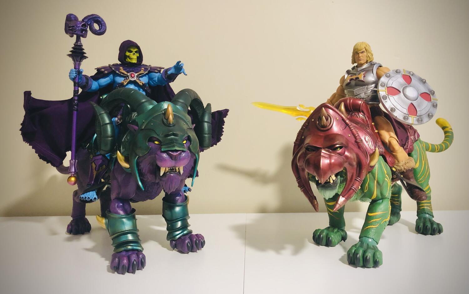 ![]() Looks really good, definitely center pieces of any He-man collection. When did Panthor started wearing armors? I always found it unfair that Battlecat got armors while Panthor always only wear a mount. |