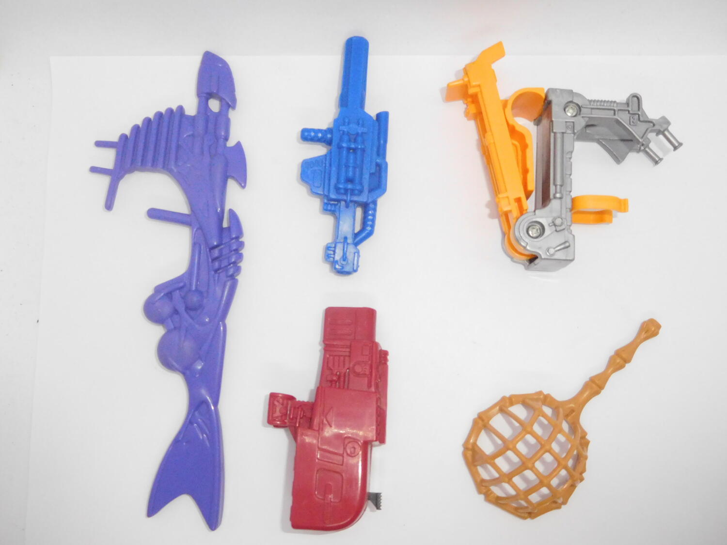 The red thing is a spring loaded missile launcher. The blue gun is solid plastic, quite heavy. |