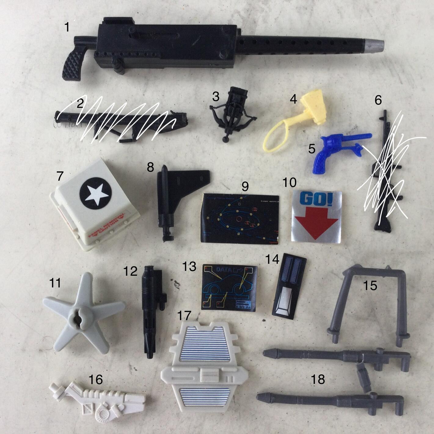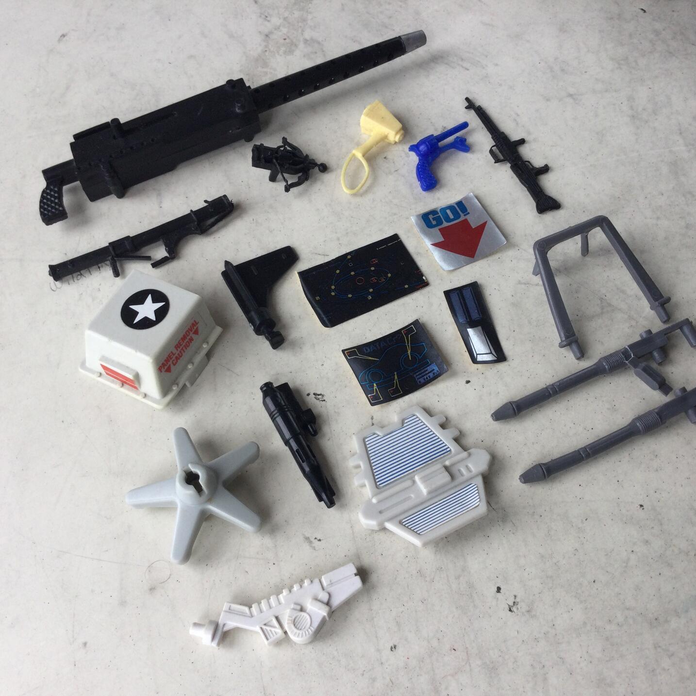 These are the last pieces from a lot of gi joe, g1 transformers, m.a.s.k., Lego, playmobil. The loose stickers might be m.a.s.k. Any help would be super cool. :-)