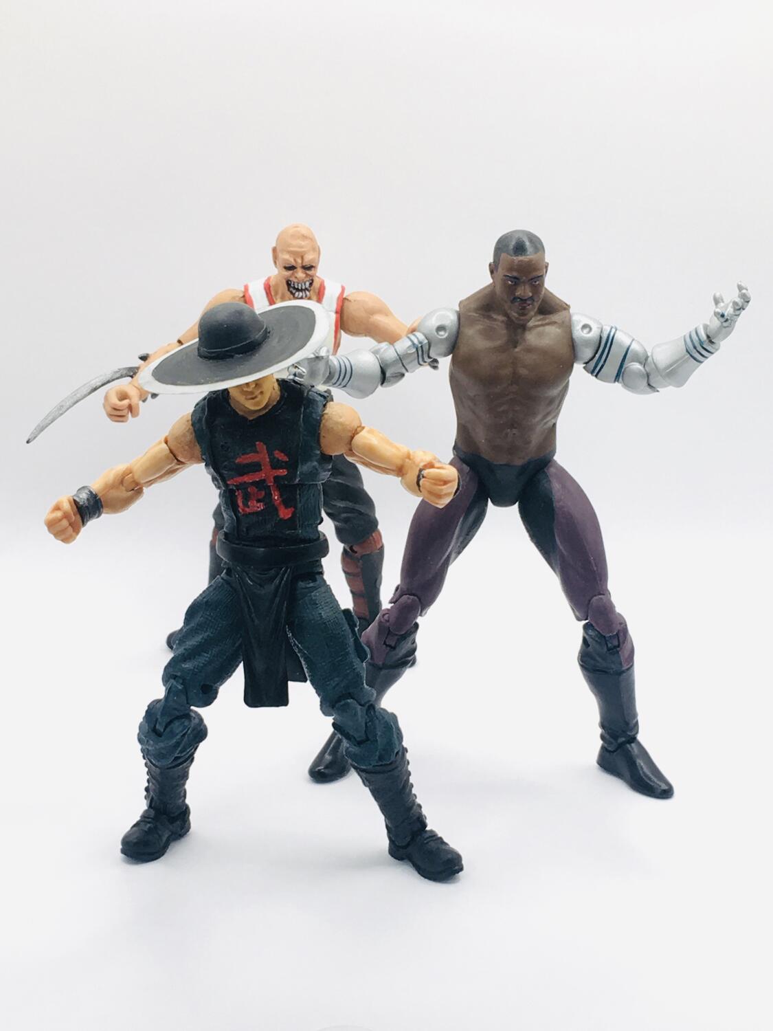 I couldn't get the eyes to not look creepy on Kung Lao so his hat just sits low on display lol. He's just Jazwares Raiden. Kano is a Boss Fight blank. Shang Tsung is a MU Mandarin ![]() ![]() ![]() ![]()