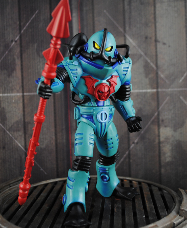 "The basic Horde Trooper whether a robotic minion or a magical suit of armor, well they can't quite get every job done. Sure they can invade a kingdom and fight on a battlefield but Hordak wanted more. He wanted utility in his legions, something new to throw at She-Ra and He-Man. Enter the specialized Horde Troopers! The Aqua Trooper is able to survive crushing depths and uses powerful sonar blasts to locate and incapacitate its enemies. The Slime Trooper is resistant to all acidic compounds and can slather the enemy in a mind-controlling ooze. With these new Troopers all of Eternia was sure to fall to Hordak's grasp!"