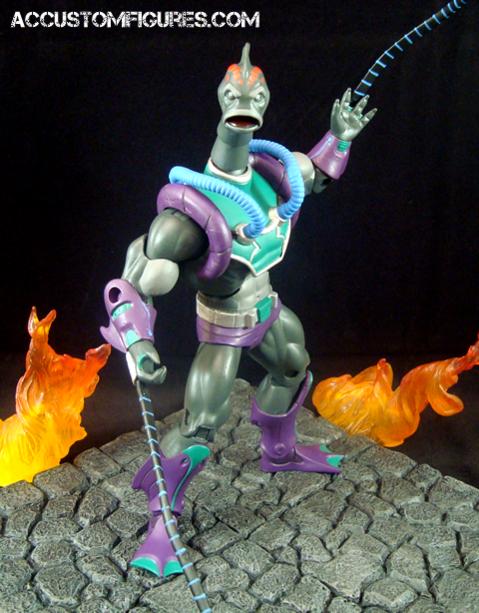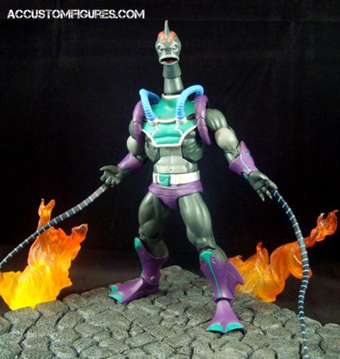 Kill-Eel was make from a MOTUC buck, Hydron legs and forearms, Mer-Man hands, Count Marzo modded chest piece, ML Constrictor tentacles, DCUC GL head, neck from some dragon toy, and fodder. Finished him with a classic MOTU paint job. Enjoy!