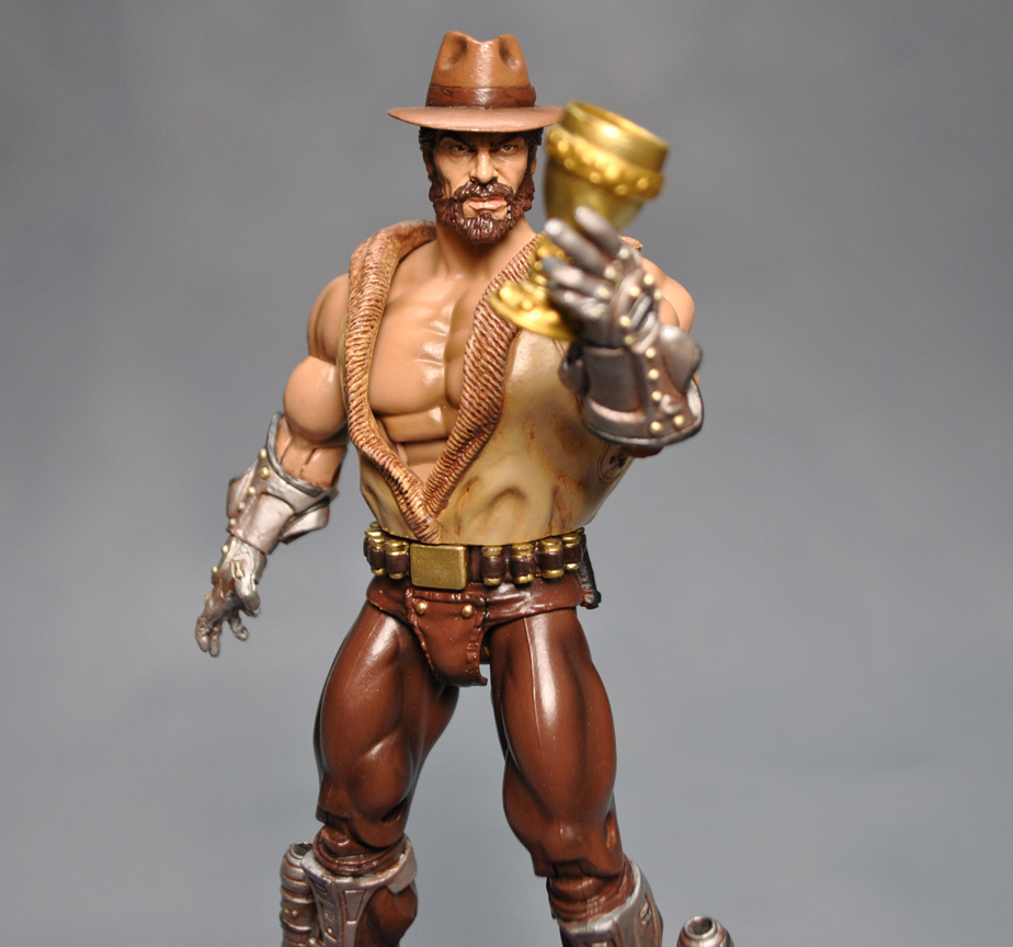 Here's another original custom creation for your Masters of the Universe Classics collection, Radd-Venture, Eternian explorer! Radd was created using a Rio-Blast body, Darius head, Saurod lower legs, Eldor shirt, Playmotion Ultron tendrils, Cad Bane gun parts, and creech wrist blasters for the jet boots. I wanted an Indiana Jones themed character and even gave him a satchel to complete the look. His shirt is removable and you can swap the power whips/pistols out between his wrist ports. |