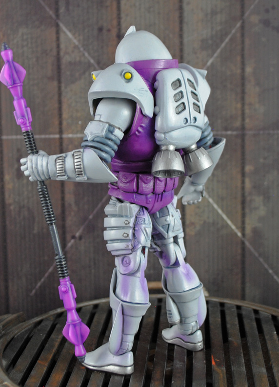 The Horde Enforcer character is based off the vintage line of Air Raiders toys, the Tyrants of Wind Enforcer! Originally a diminutive 1-inch tall figure I've recreated him in 7" MotUC scale using a Flogg body, Dark Knight Returns vest, Icarius boots, Lex Luthor power armor shoulder pads, and one of the spare alternate horde trooper head from General Sundar. Keep an eye out because I'll be making the orange and tank heroic Air Raiders too! |