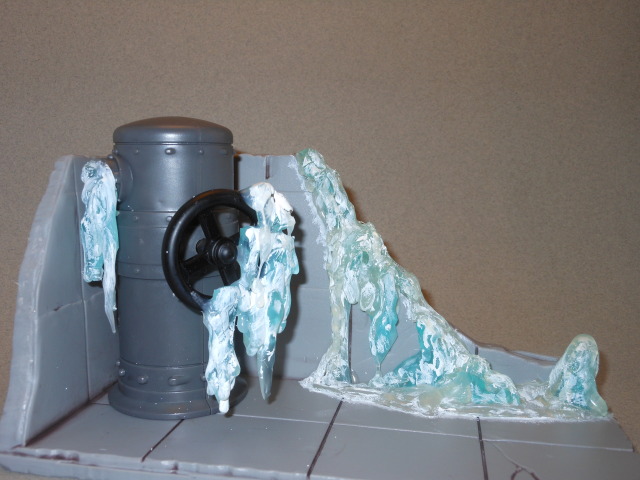 heres a aqualad base that i modified for Mr freeze..the ice is made up of hot glue and pieces of the water efect from the aqualad set