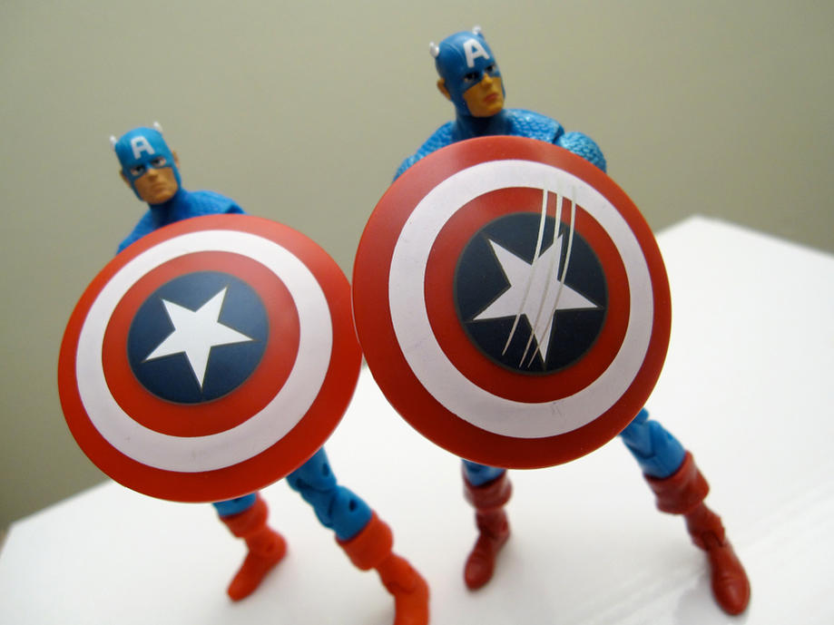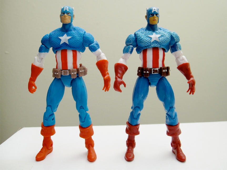 Comparison pics between the two comic-pack Captain Americas.