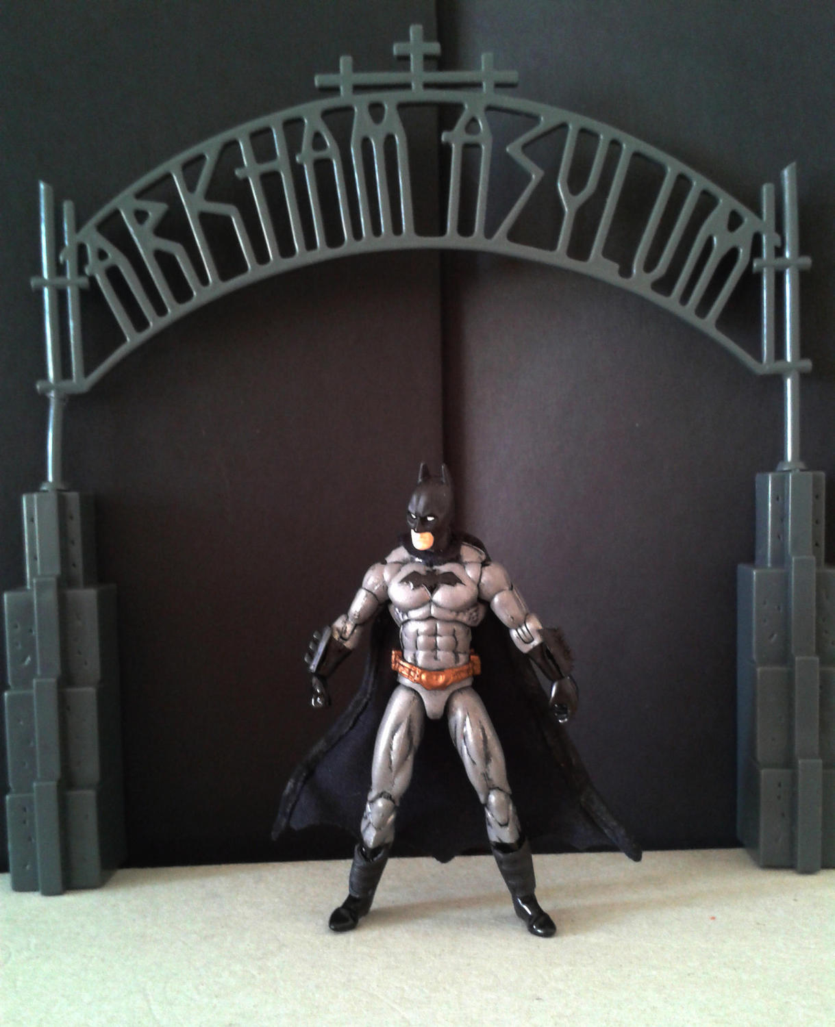 Heres my attempt at making an ULTIMATE Batman,I have the Public Enemies one that I popped a new head on thats pretty nice (you can get a look at him in here: Non G.I. Joe Deathstroke,Red Hood,Bane+Green Arrow - HissTank.com - G.I. Joe ) But I wanted to make one with a slightly "buffer" MU style body and a TDK style cowl. I put wire in the cape for max poseability and gave him some Arkham City style gauntlets + leg guards. Hope you like! This figure is for sale / trade PM me if interested ![]() ![]() ![]() "Arkham Breakout" ![]() The Big Three