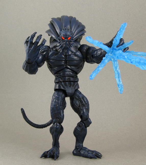 Here's a revised take on Blackheart as he's portrayed in the Marvel vs Capcom 2 video game. Though similar to the one created before, this one has a sculpted neck instead of the mane being static. A TMNT Jaguar stone warrior was used for the mane, ML Blackheart face, Gargan Venom body, and Ultraman multi-headed Dragon-creature's claws were used for his feet. Blackheart's minions were made from movie Spiderman Lizard mini-figs with Spawn bendy demon heads and hands, as was Blackheart's tail. Add a bolt of Dark Lighting and a flight stand for his leap-n-toss attack and Blackheart is ready for action!