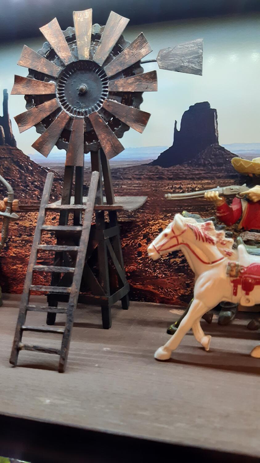 Today I completed the first object of the diorama project. Wild West Wind Mill is now ready. You can rotate the mill by hand. Now I have Saloon and a small house project. Thank you.