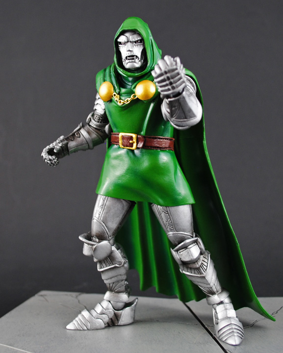 Who dares display any other figure than the unimaginably powerful Doom?! You have come here for one singular purpose, to gaze upon absolute power! For it is Doom who will crush your other figures. It is Doom who will stand above all other pitifully twisted masses of plastic vanity. Known throughout nations and vastly supreme in all ways, Doom was created using the new 4 Horsemen Mythic Legions Templar Knight body, custom cast head, Multiverse Dark Knight cape, and sculpted armor sections. Doom's skirt was made from a Masters of the Universe tunic and armor joints were sculpted, the whole figure then given the airbrushed treatment. Now KNEEL BEFORE DOOM!