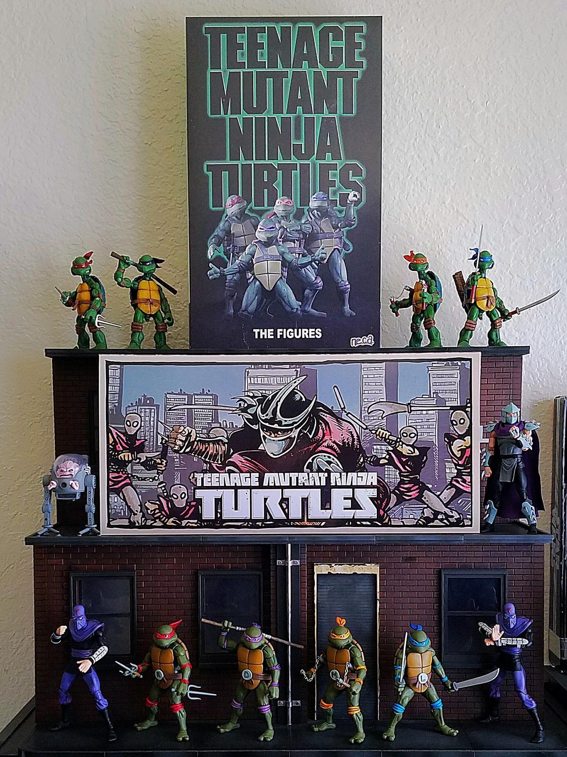 Thankfully, these figures stand so well on their own, makes taking them down when I use the dio a lot less of a pain. The width of the SDCC dio works great in allowing you to display some of the boxes as well. NECA has hit it out of the park with these on all points these past few years....I'm so glad they were able to re-release the toon turtles this year. |