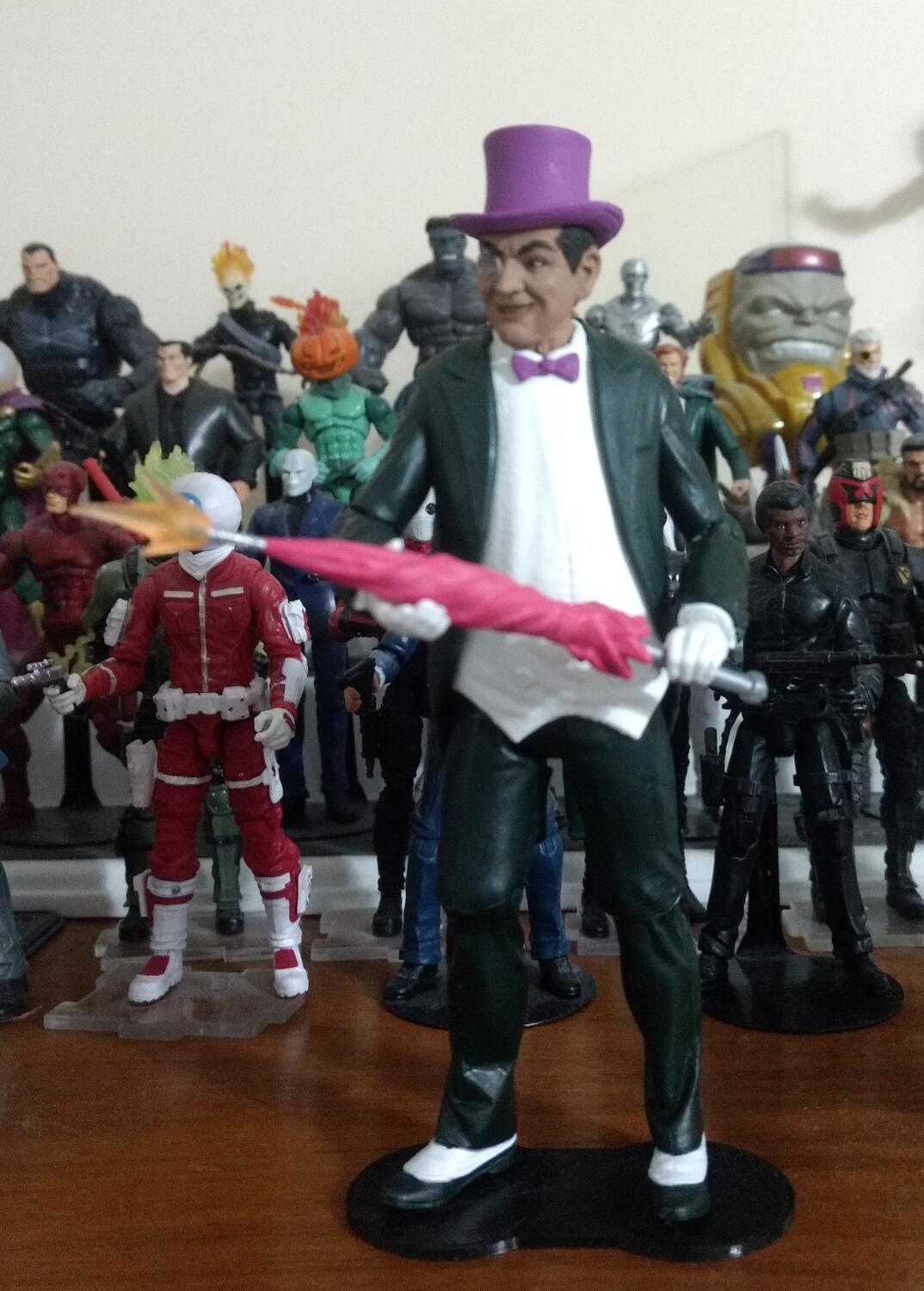 While it sucks that Penguin doesn't come with his umbrella, the good news is that you can use one from Marvel Legends White Rabbit. Since Penguin doesn't have a gripping hand, you'll also need to use one of her hands, too. The wrist peg on Rabbit is smaller than Penguin's, so you'll need some hot glue to make it fit.