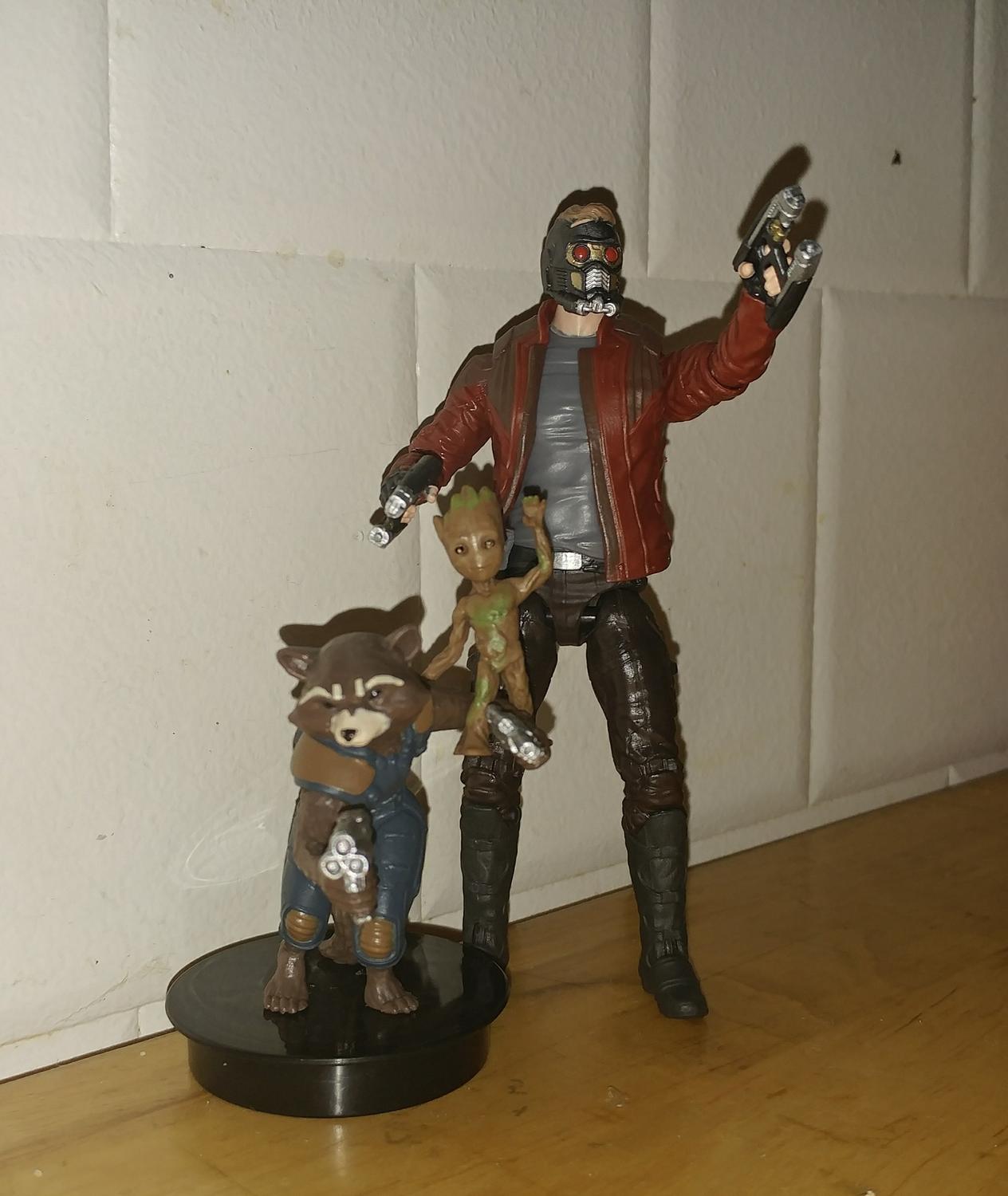 rocket and groot (kinda hard to see but he's on rocket's shoulder) from the disney store figurine set