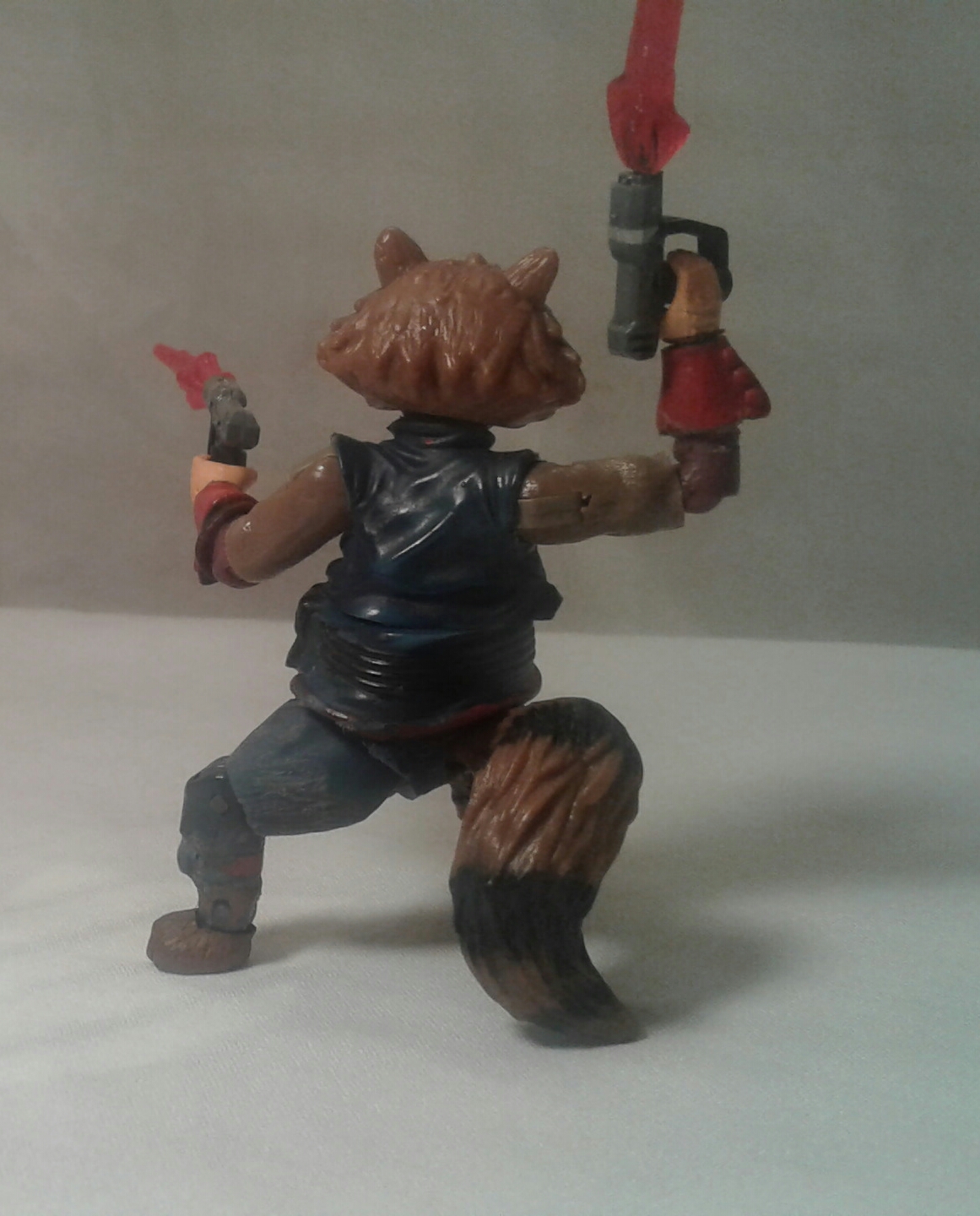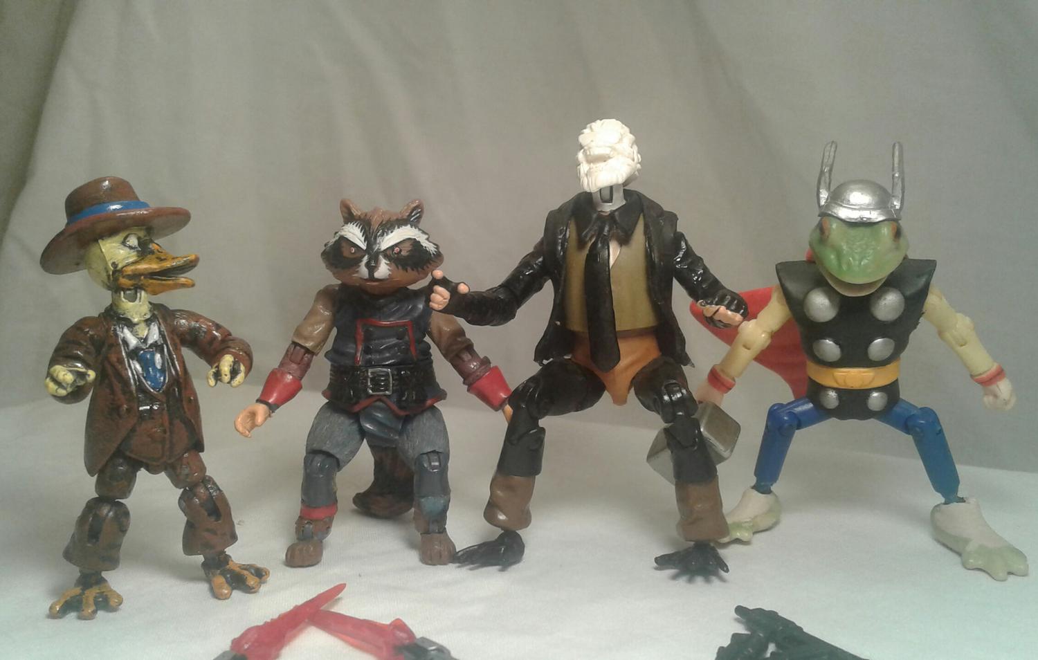 Just came from the Lab frankensteining a few super fun, super small, and super difficult mini customs. Guys these are all works in progress and feel free to judge my work please. 1st up is Rocket Raccoon- Articulated feet, legs, arms, and hands. Next up is Throg made from some hard plastic game piece, an articulated neck, legs from Sonic the Hedgehog, feet from a Schieltz frog and the head came from the Same Schieltz frog heavily modded with a Marvel universe Thor helmet. And last but not least, the Hitmonkey. Thank Vortious Customs for the head, tie and articulated feet. The legs are whittled down from a wasp figure, and I think I'll cut the shins a lil shorter. Arms from a GI Joe Baroness, hands- B.Widow. Hard work and I love it! And again COMMENT!! OH YEAH thanks Pilk for the Hulk Critique means a lot. Back to the Lab. Sincerely the Creator. Keep Creating guys. Thor from Is very nice I have a WIP somewhere in one of the to do boxes using the baby cyclops figure that came with the Rogue 3 pack. Hit monky is really nicly done. \im not familair with the character to much but from quick google you have him spot on. |