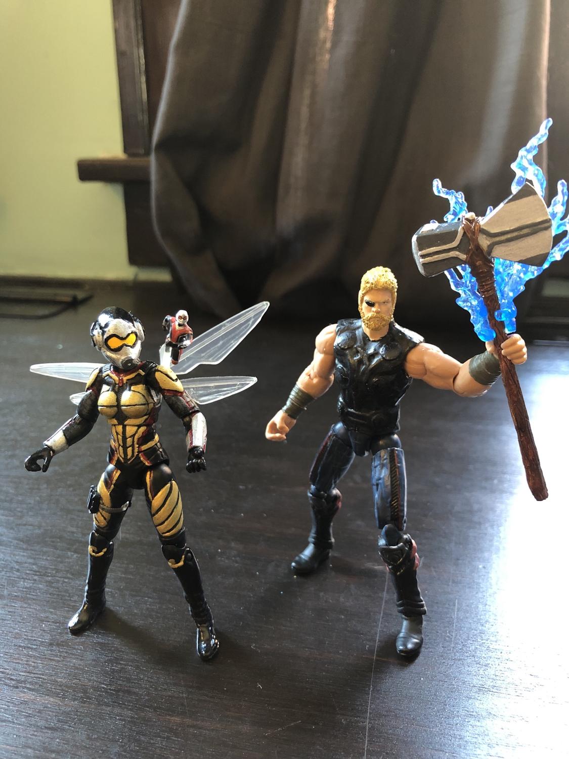 Looking for some tips for some customs and hoping I'd get some help here I was wondering what could be used for the following Cull Obsodian M'Baku Okoye Wasp (sort of have an idea for her) Ebony Maw Trying to add to my Endgame Final Battle diorama and my Thanos army is severely lacking I've Thanos,3 Chitauri and a Dark Elf And on the Avengers side I've Cap Iron Man Thor (another possible custom as his hair keeps breaking off) Scarlet Witch (custom needed for a poseable/movie accurate body) Doctor Strange Black Panther Spider-Man Captain Marvel Star Lord Rocket Groot (using the 5" as a grown up Groot,beggars can't be choosers) Bucky (The Hobbit's Kili head on a CA TFA Winter Soldier body) War Machine Falcon And awaiting my Professor Hulk w/ Gauntlet to arrive |