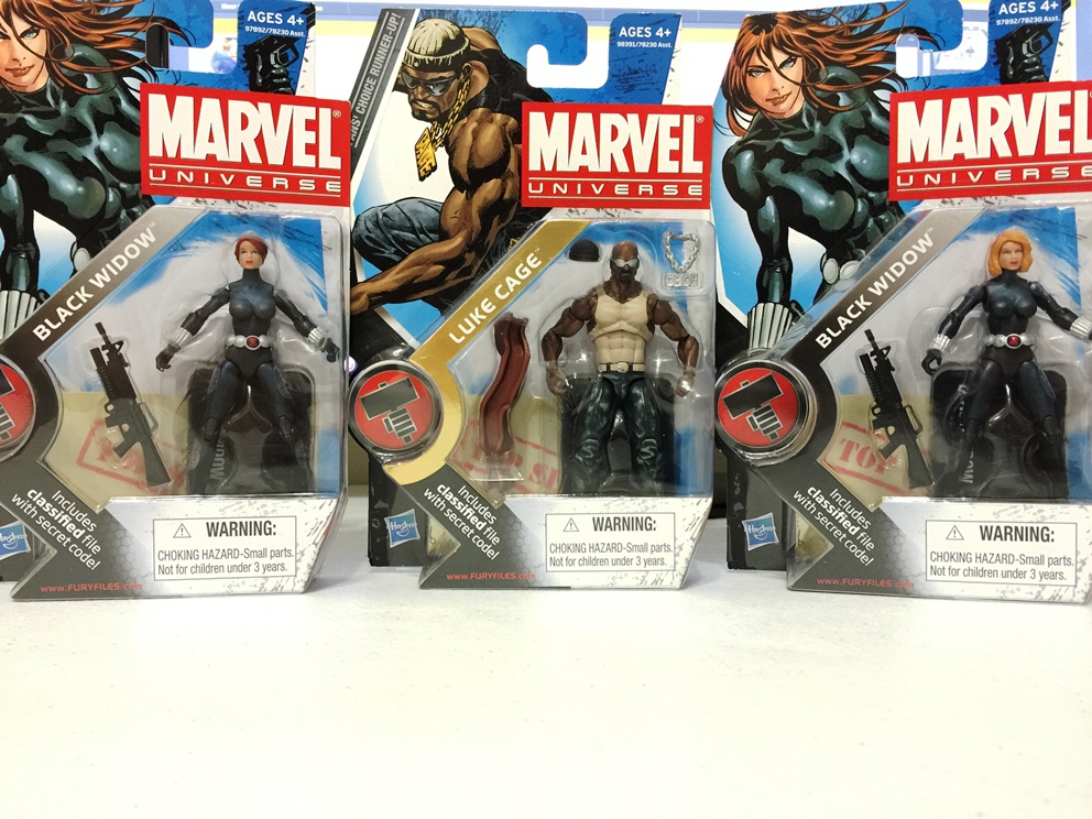 Also, I know we always refer to this Luke Cage as White Tank Top but now that I see it in person (I forgot to mention this when I first got them), the tank top is actually a beige/yellowish color. I don't think you can see it on the pics but trust me on this, Lol... Technically Hasbro could make a repaint of that one in MI. Not sure if they actually would. Black Widow on the other hand I doubt they would make those. Could you get pics of the sides of those Black Widows to show off the hair? |