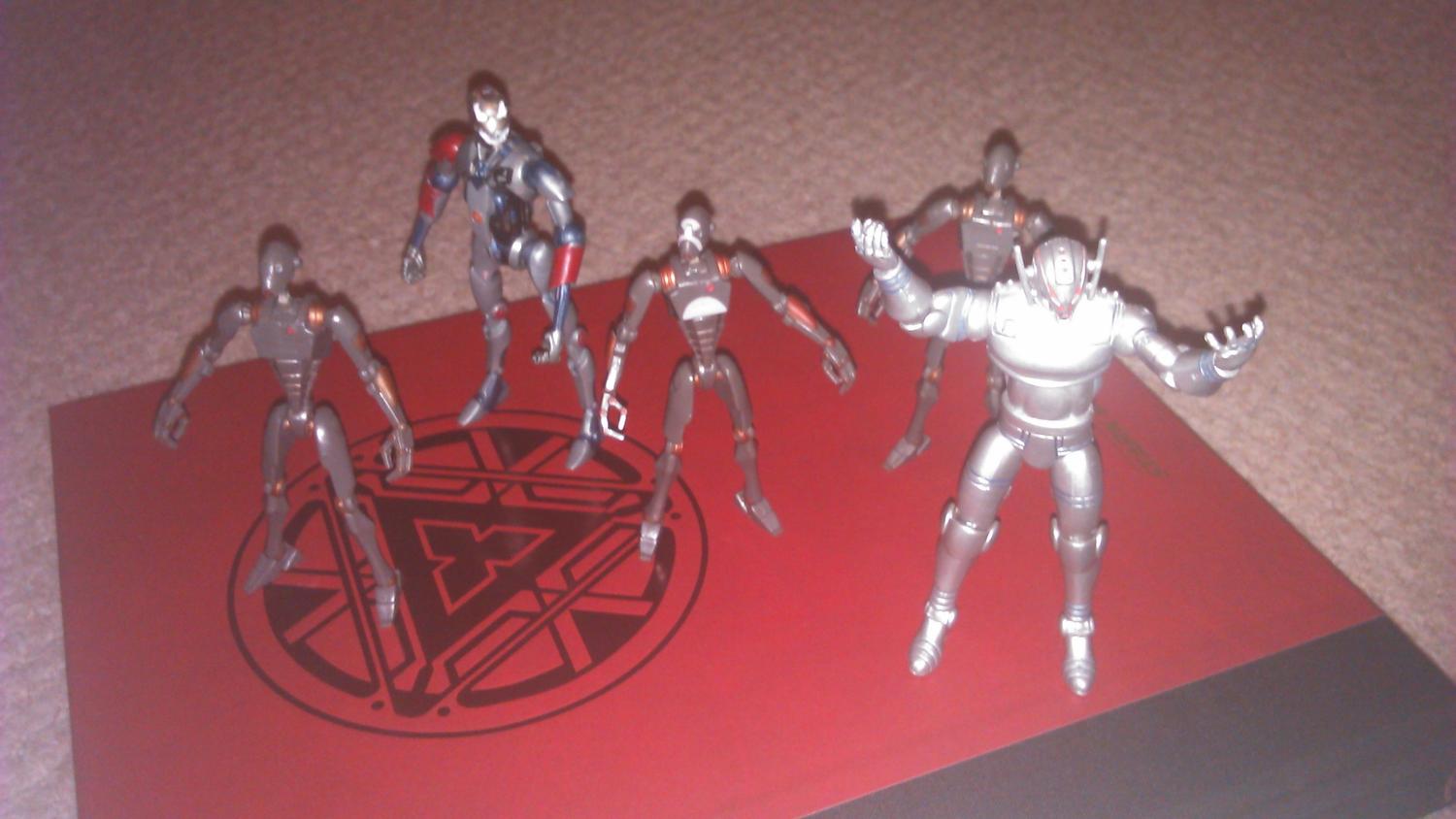 i do see a 12" Vision titan, a huge 24" *(guessing size) Ultron Prime, 6" Anti Venom (to my eyes anyway) and SOMETHING weird beside the MAYBE Emma(or white Vision)....looks tall,green and yellow and maybe multiple arms? Doc maybe?