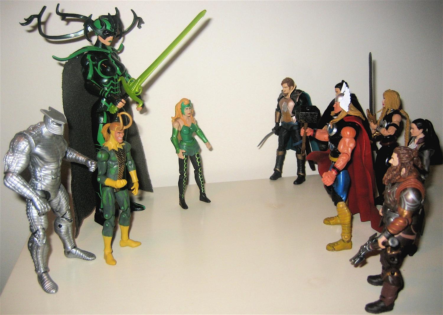 Just need me Fandral & Volstagg, maybe a custom Balder, and my Asgardians are done. We're lucky we got so many in the movie line, otherwise we'd be out Sif, Warriors Three, Odin, & Heimdall. I could do a Siege display with my Dark Avengers, Asgardians & New Avengers, I've got most of the characters now.