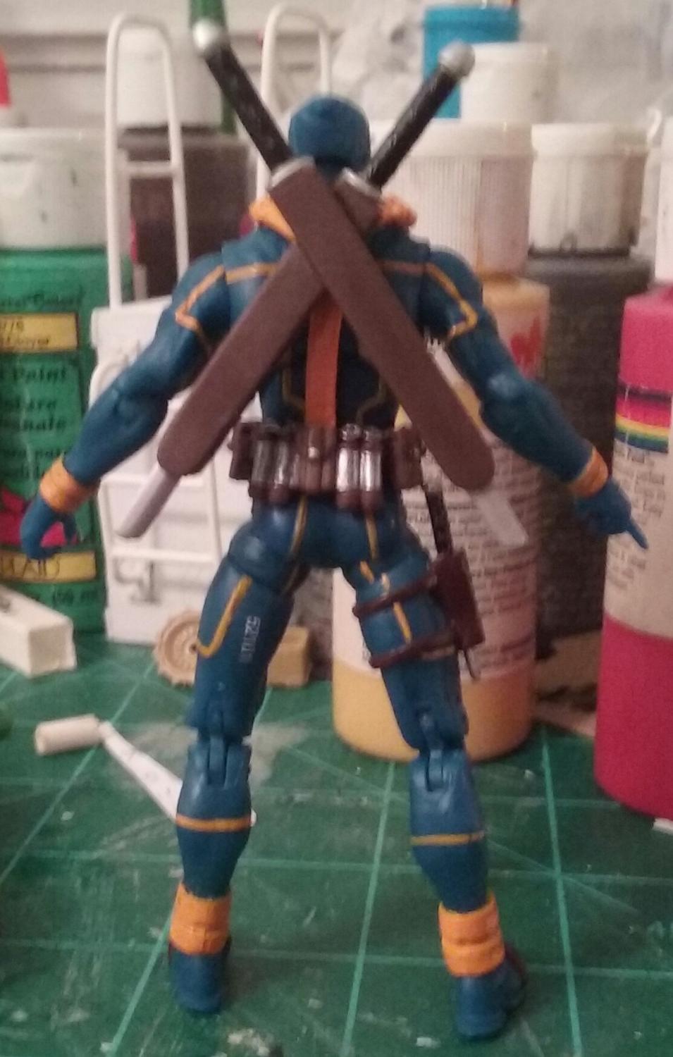The way they made Deadpool's swords set so high looked ridiculous I cut the bottom out of the gun holster so the knife would fit in. |