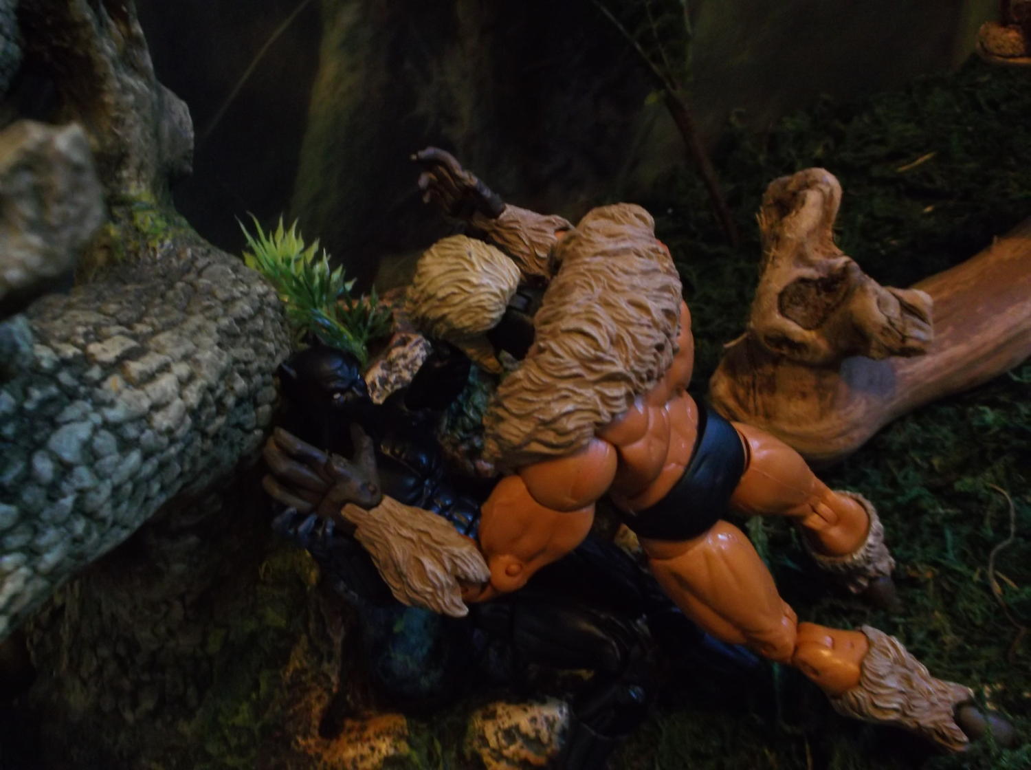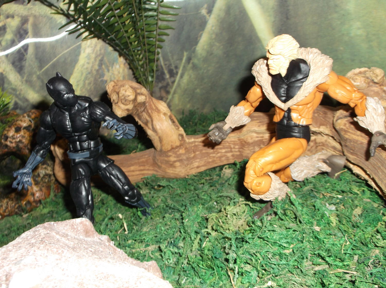 I made a jungle Dio earlier in the yr due to having caught NECA Predator fever & buying Preds, but then soon after, I sold them off due to them being too fragile to actually play/pose and parts/weapons being brittle, not to mention, pricey.. So being that I was finally able to order BP on line last week for $27 shipped & I have the classic 1st app Sabretooth, I figured a jungle battle scene would be a prefect setting for those 2. It's beyond me that these 2 have never met & fought in the comics. Would be a hell of a fight.
