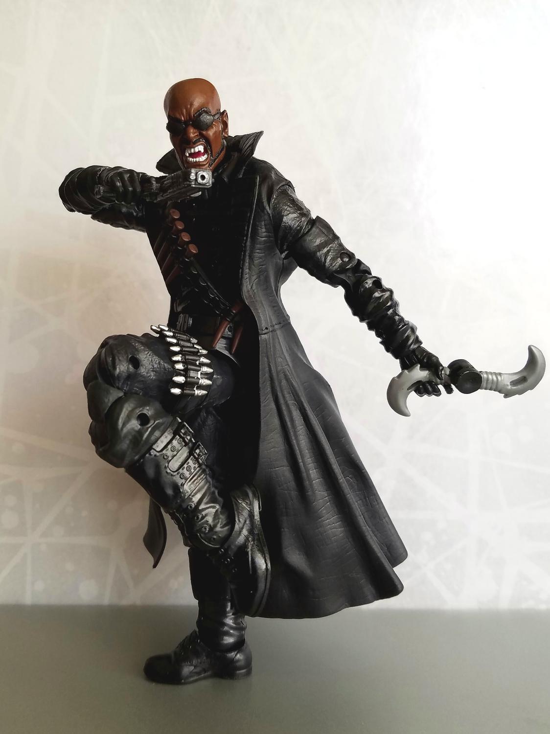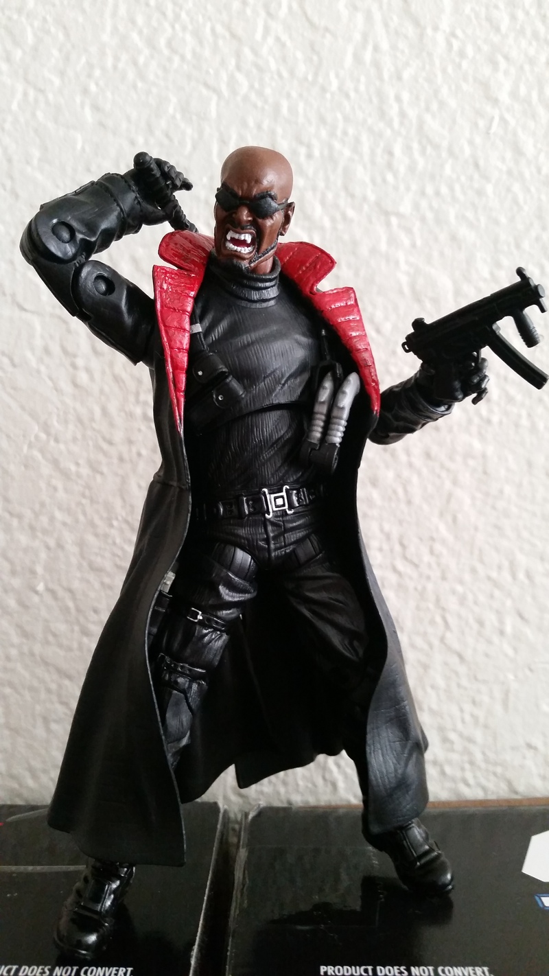 Really want a Blade and since Epic Heroes was cancelled but the blade we got doesn't quite do it for me was gonna try my first ML custom. Figured I'd get that cast of the Epic Heroes head and paint it. Only needs 4 paint colors and I got 2 already. Just curious before I take the plunge. Cracking torsos is always a risky proposition, especially with Legends. It's not something I have been able to do reliably without occasionally ruining the canvas, so now I just kit bash the hell out of figures when I customize instead. If it can't be done with hot water and paints, I'm not interested. That said, I've done a number of Blade customs over the years. My favorite one this far was my most recent one, using the Spider-Man Noir figure and the parts and attachments from the new Blade. That figure features pretty good articulation, as well as a set of hands that works great with both swords and guns. I also had a lot of fun using the Demolition Man (Scourge) figure with a different custom. I think it works well for an armored version of Blade. I've also seen people do decent customs of Blade using just the Netflix Punisher's body on it's own, so that could also save you the trouble of trying to crack a torso if you're okay with that look. Not sure if that helps at all, but I hope it does. Good luck! |