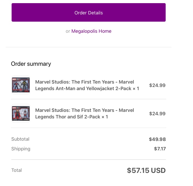 Ordered the Ant-Man and Yellowjacket and Thor and Sif sets for $57.15 shipped.