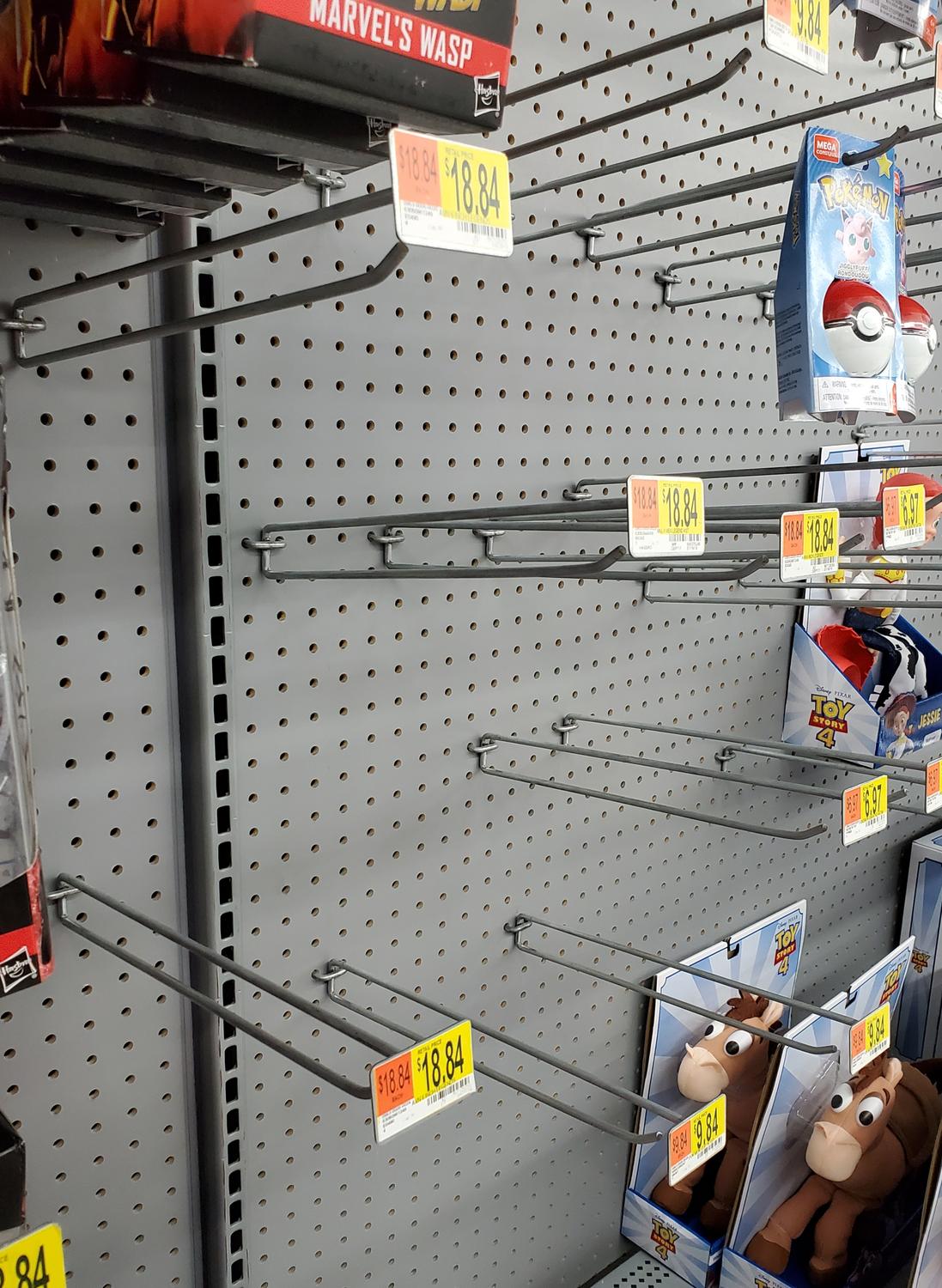 I know a few people who have worked at Walmart for several years. According to them the toy dept. is one of hardest areas to stock because it's always a mess & takes a while to straighten up. Then when stocking you have to put each item in a certain place & that is tedious. They have told me it's one of the most undesirable jobs in the store because after all that they then have to deal with a bunch of irate fanboys/girls!