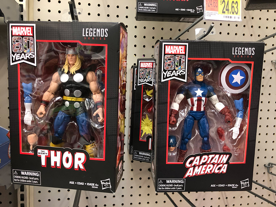 Found 80th Cap, Iron man and Hela/Executioner 2pk. Watch out on Cap and IM on the paint jobs. I nearly walked all the way to register before noticing a bad white paint smear on the 2nd Cap head and scratches on IM's faceplate.