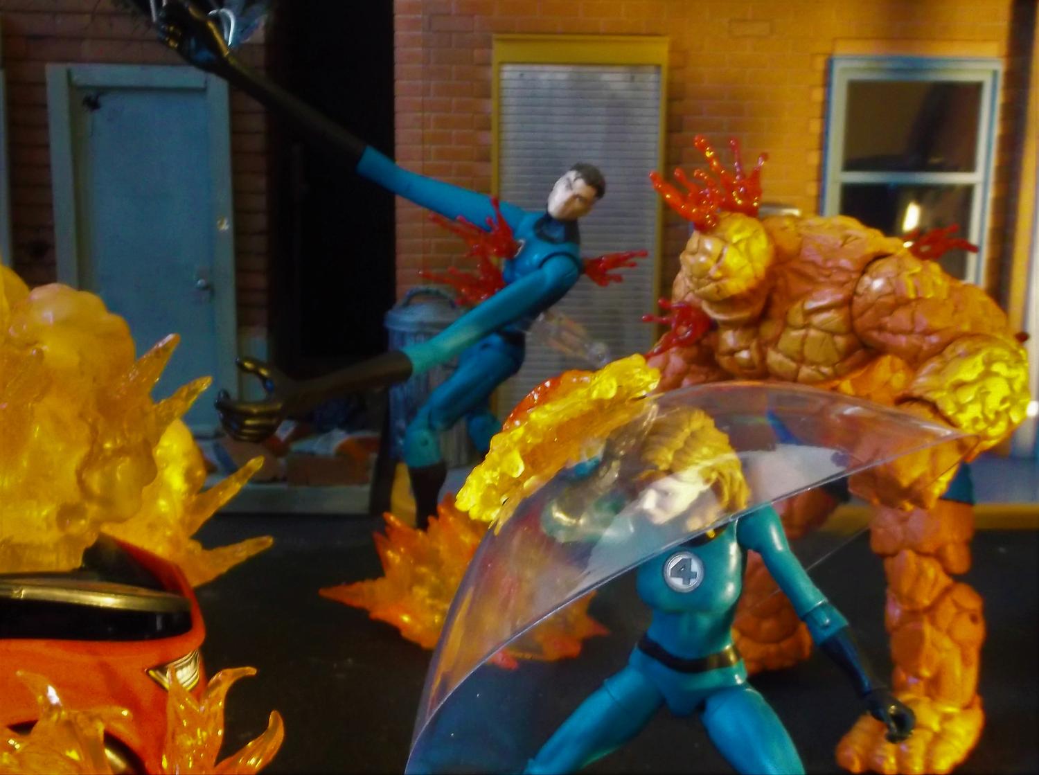 I'll just stick with the awesome ML TB Sentinel till Hasbro ever decided to make more affordable 16'scaled classic "DOFP" Sentinels at an affordable price point at retail or via Amazon/EE. Here's a little throw down between the FF/Spidey/Deathlok & Punisher vs a Hunter/killer Sentinel that is unleashing a fusillade of 20mm uranium depleted rds at our heroes. Let's just say, it's a bad day for Reed & Ben.