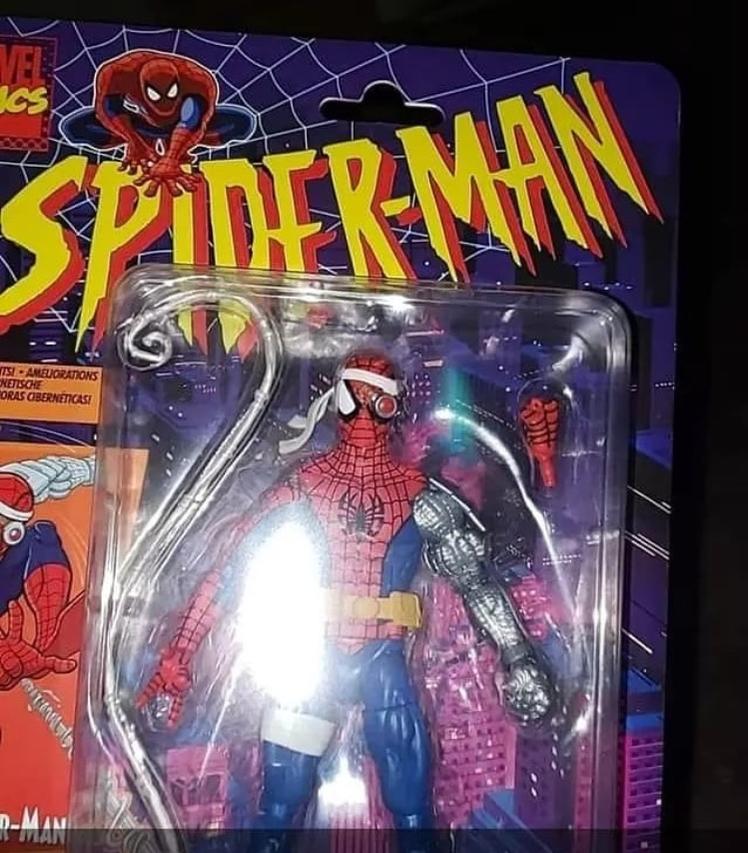 Pics are floating around of a retro-carded Marvel Legends Cyborg Spidey (chiefly from Rektangular and over on the Fwoosh forum).