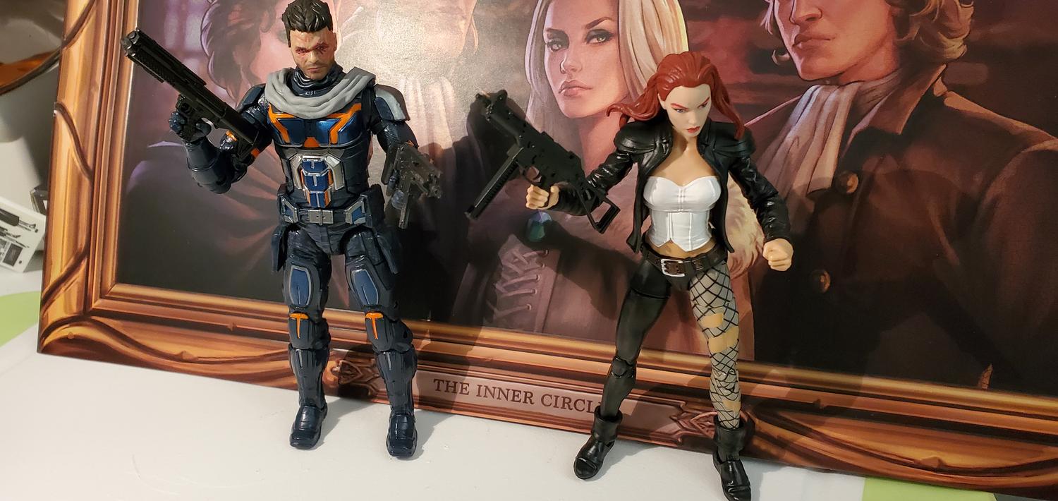 Ordered a 2nd Hellfire Club set. Did a Norman Osborn and Tony Stark Black and White Bishops. Wanted something a little different for the Princesses. Went with Jessica Jones and Silk from Fan Vote. Used old GI Joe stands for the ladies to help them stay up.