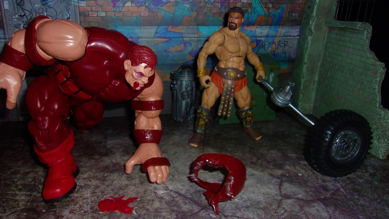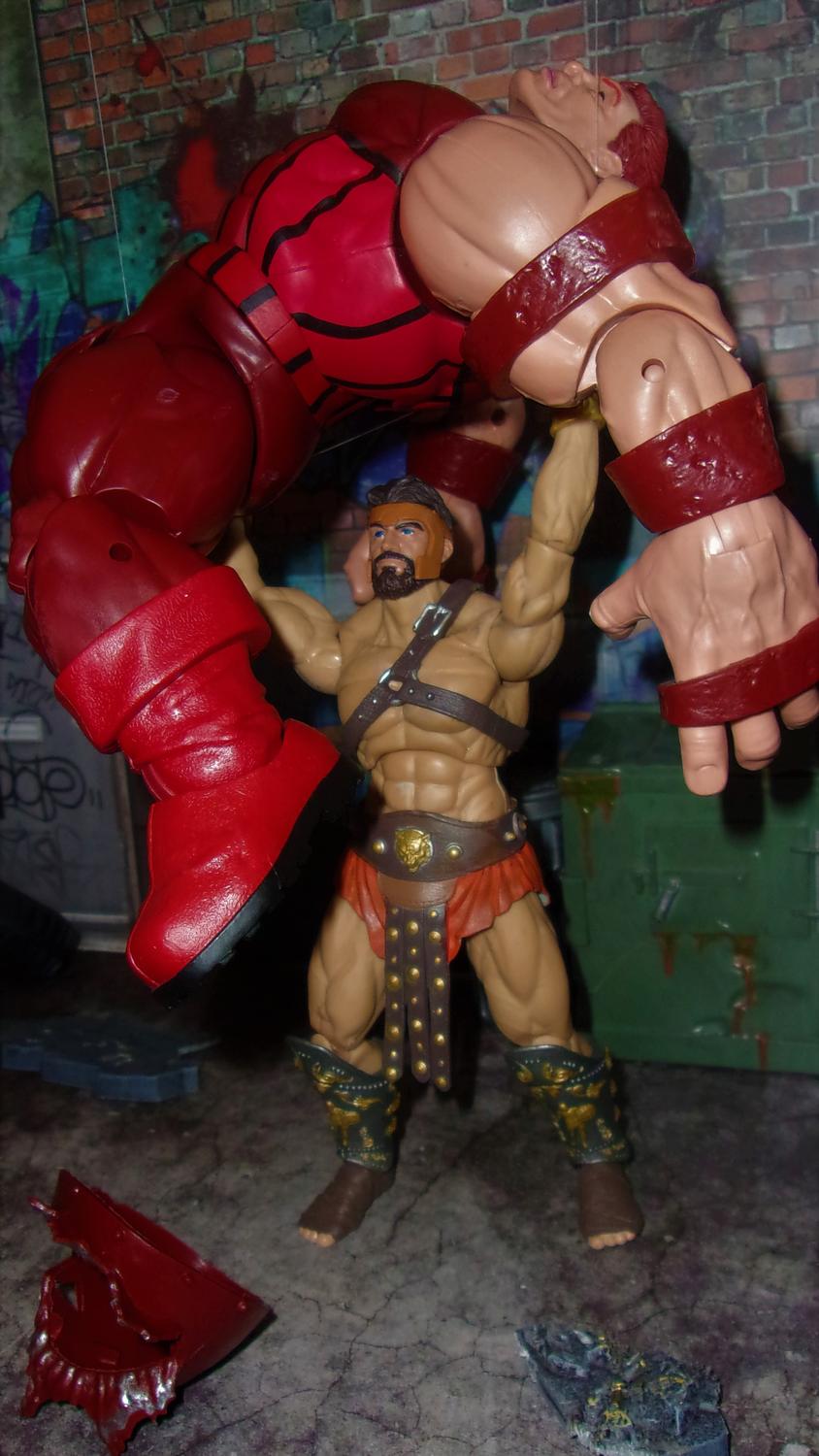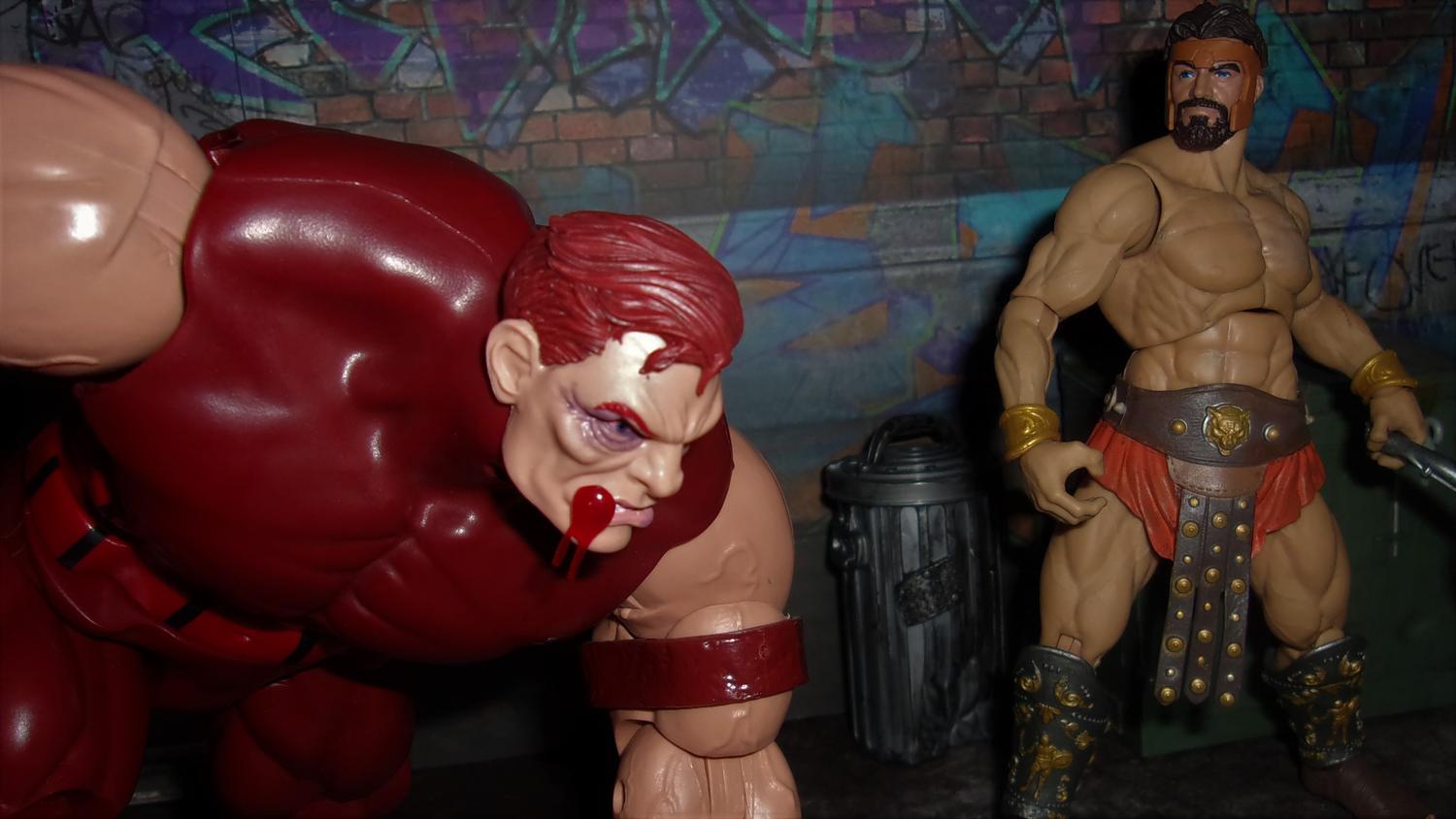 Gonna be a few more months till that 80s Herc is in my hands so will have to make do for now with a WIP Classic Herc I'm working on. A good sash is needed. Anyways, he here is dispensing the "Gift" to Mr Marko.
