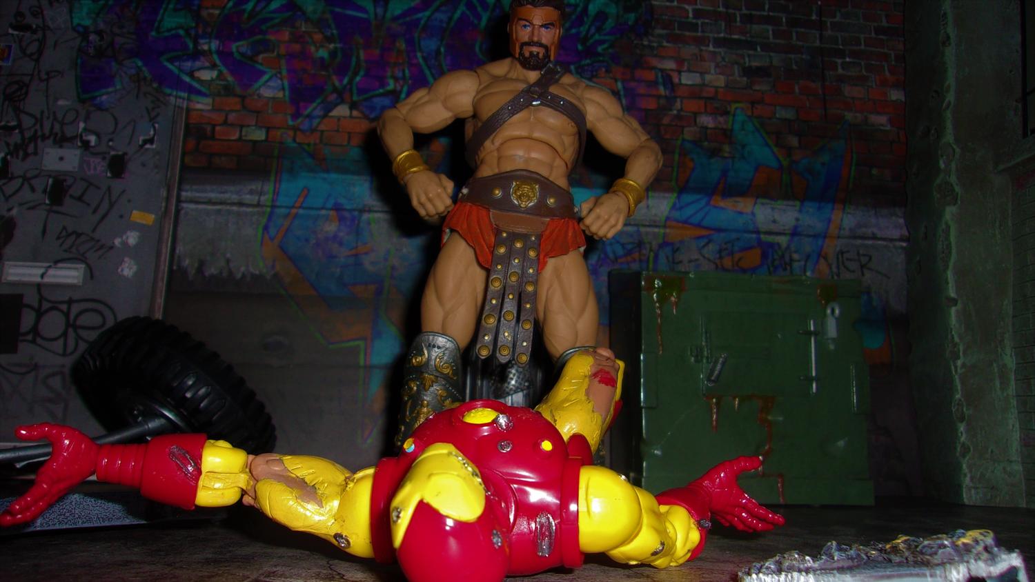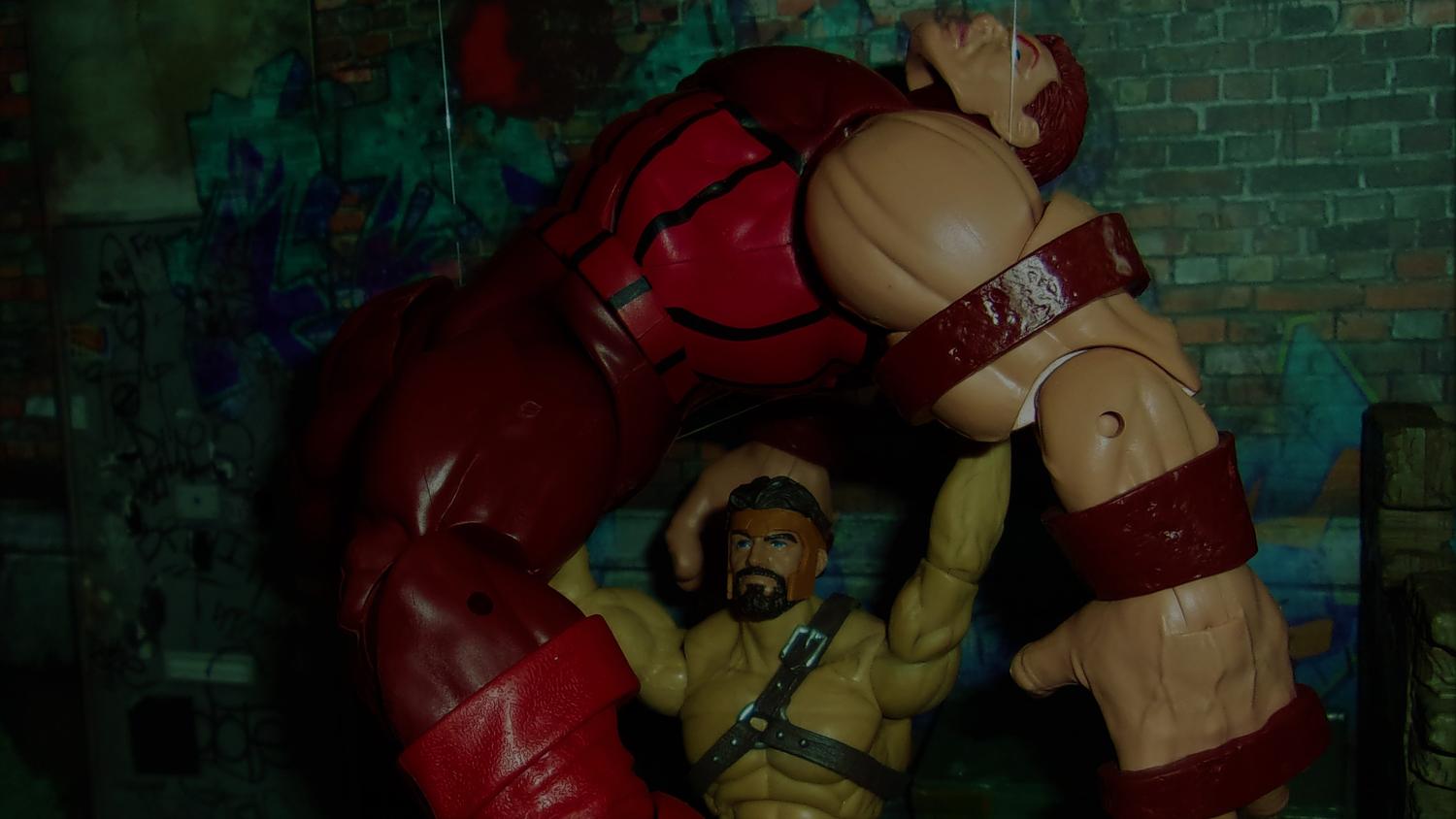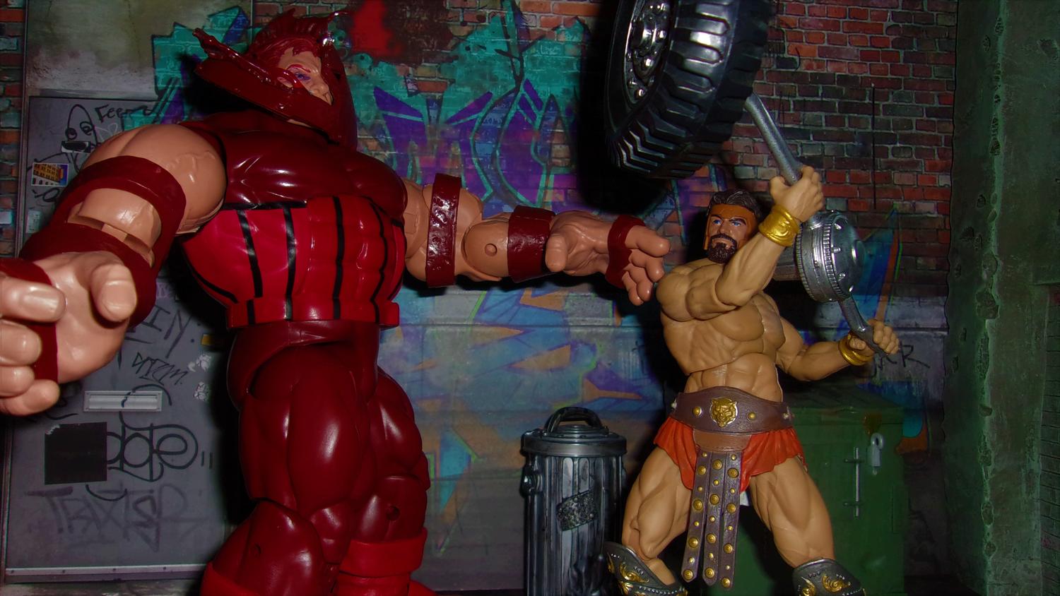 Gonna be a few more months till that 80s Herc is in my hands so will have to make do for now with a WIP Classic Herc I'm working on. A good sash is needed. Anyways, he here is dispensing the "Gift" to Mr Marko.