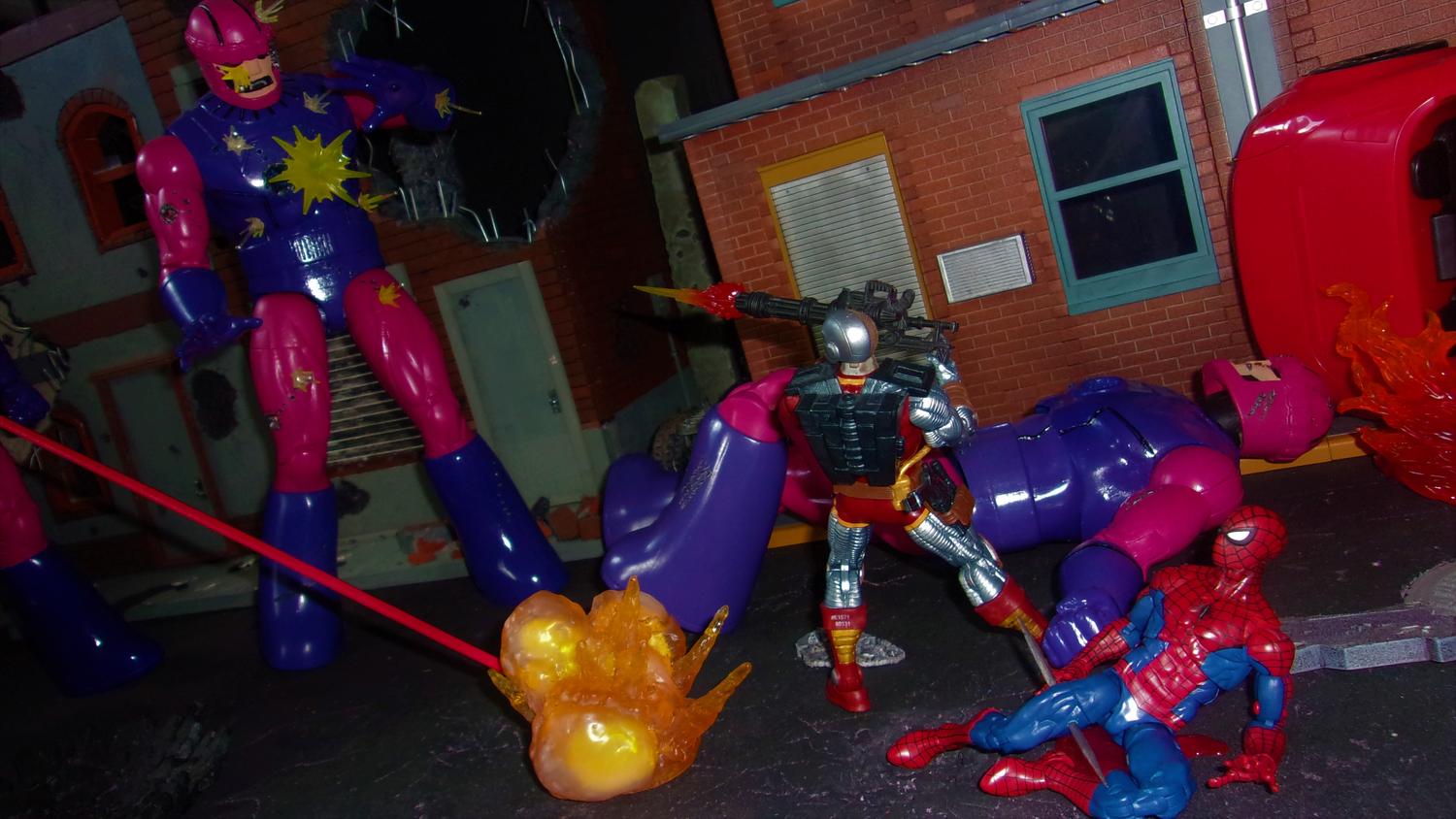 Can Deathlok save Spidey & himself from a Triad of Hunter/Killer Omega Sentinels?