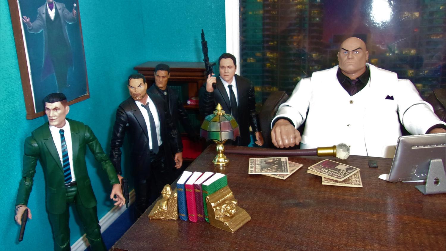 Decided to buy a bunch of suited figs to serve as Kingpin's soldiers/hitmen. Threw a few head sculpts from other figs and just kept the MCU heads on as they can serve as thugs in the comic based universe.