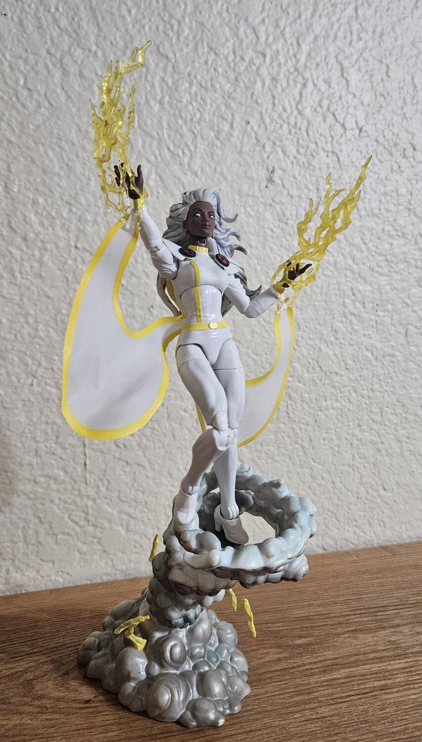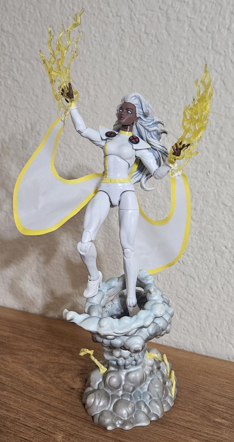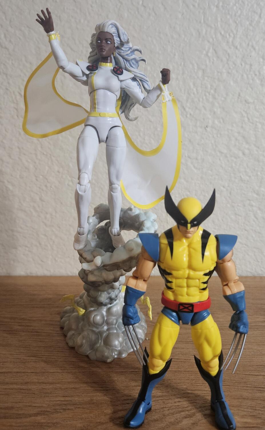 Stopped at Walmart on the way home, they had the whole 97 wave, I picked up Storm, I swapped the head from the retro card storm onto the new body, and gave her the Goblin BaF Black Cat feet. The new mohawk head is going on the Apocalypse BaF wave Storm body. For Wolverine I dry brushed some black paint on his arms. I may go back for Bishop and Magento