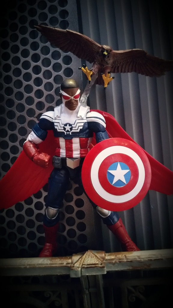 I used the Titan heroes Falcon wings for Sam. they have a little bit of movement for down/full spread (but not a lot) and are pinned into a backpack cut from Playmotion Falcon...