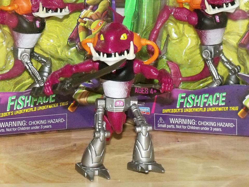 The figure has several points of articulation. Starting with the head dow; Head can swivel back and forth, all the way around in a 360 degree angle. Waste swivels around in a 360 degree circle. Arms can move up and down, and swivel at the wrist. Legs are on ball joints attached at the waist. No knee articulation. Much like the Splinter figure, the tail must be attached, as does the fur "spikes" on his back. No accessories come with the figure. Fishface will follow shortly.
