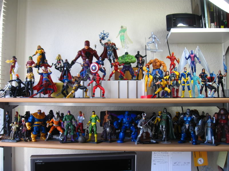 Primary display collection. I used to have Daredevil, Punisher, Namor, and Moonknight in there but waiting for the new ones to come out so I can put em in. Moonknight i'll eventually put on a better body. but for the most part, goodguys on the top shelf, various badguys on the bottom.