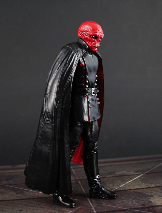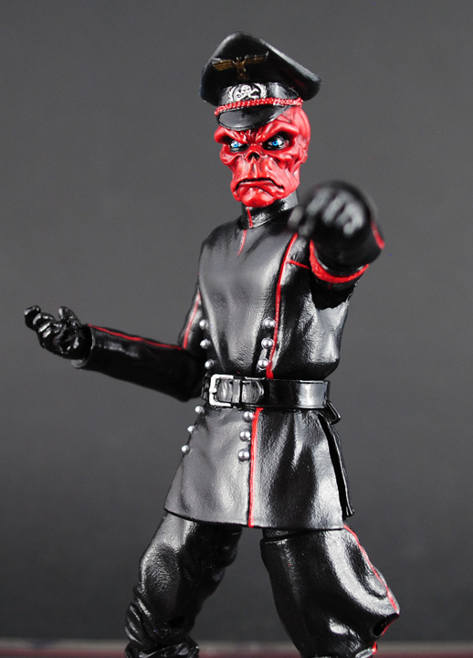 Commander of Hydra and seething with hatred for Captain America comes the ultimate villain, the Red Skull! Here I bring him to you in his officers attire ready for battle. This custom Marvel Legends scale Red Skull was created from the Rogue One Krennic body with a Red Skull head and Danger Girls' Major Maxim modded cap. The front and skirt of Krennic's uniform was resculpted and other details added to make this Red Skull look military ready. Now he's ready to lead Hydra to glory!