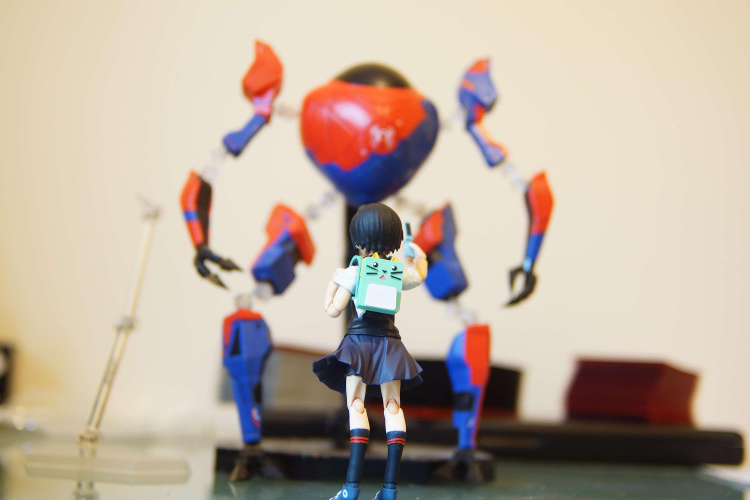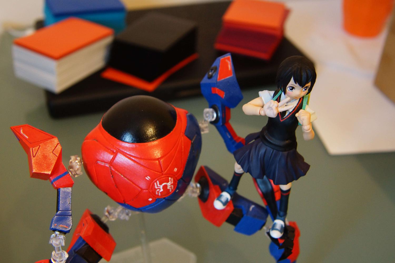 Here is my Peni Parker custom (and my SP//DR custom along with her because why not?) She's an expensive kitbash custom of figma figures (base is 315 future boy Conan, with parts from SP-019 Shirai Kuroko, and EX-006 Mato Kuroi). The head and bag are custom sculpts by me, made digitally then 3D printed. (SP//DR is a complete custom made on fusion 360, and detailed in nomad sculpt) |