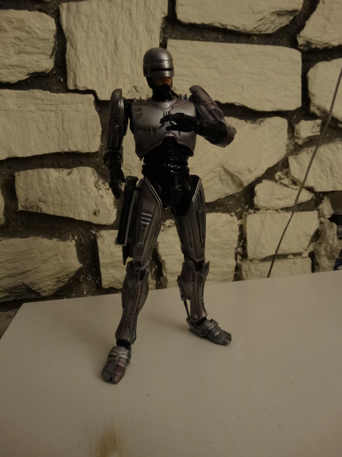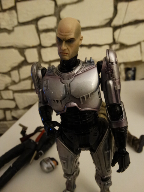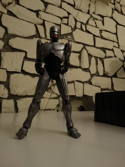 He's gorgeous detail-wise, but some small problems, inherents to the original design, are present. But let's have a look! Murphy comes with several hands, including the throat-slashing usb connect device! Woops... Overall sculpt is great, and the face is very accurate. Too bad they didn't include a face without mask. Maybe they couldn't clear the rights of the actor? I'm sure someone could manage to do one with Hitman's heat, though. Size-wise, Robocop is on the smaller scale of the PAKs. He's on par with Hitman, Tomb Raider, or FF characters, but is smaller than DC heroes or Medal Of Honor guy. Be aware of that if you intend to do some displays. "Dead or alive, you're coming with me" The motion range of the shoulders is not that great, but enough for the classic poses. The weakest point of the figure is the motion range of the lower part of the legs...