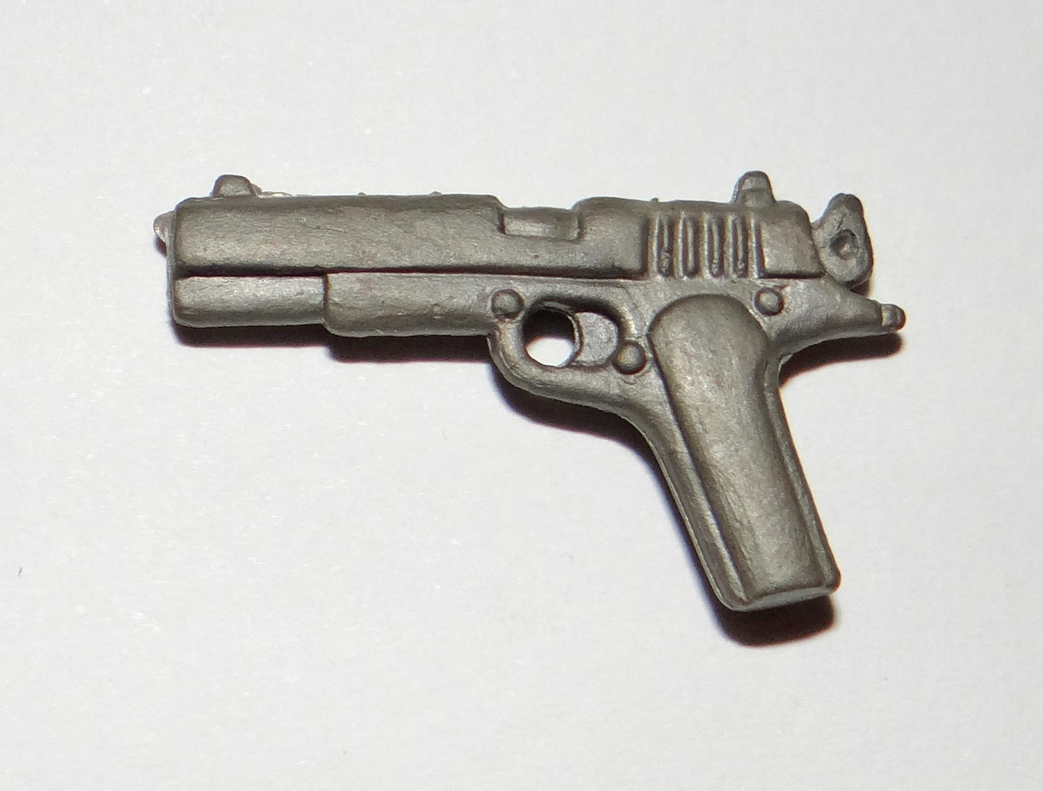 11. 1.5" Brownish Gold Blaster. Fits a 3-3/4" figure. Feels a bit like a GI Joe Gun but has more shine to it.